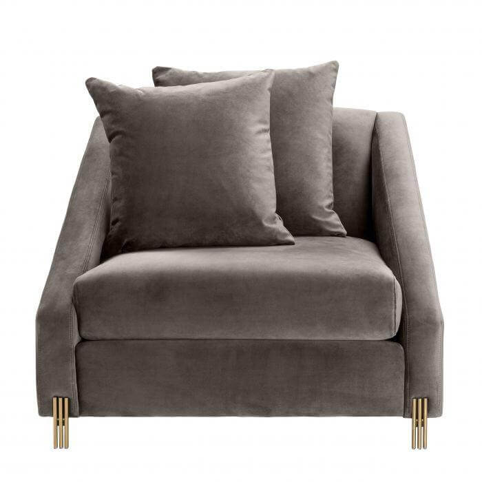 Carlisle Grey Velvet Brass Armchair Sofa