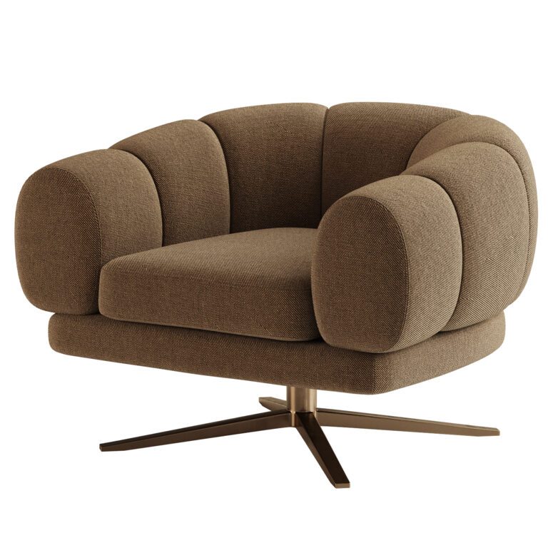 Carlotta Taupe Velvet Brass Swivel Armchair