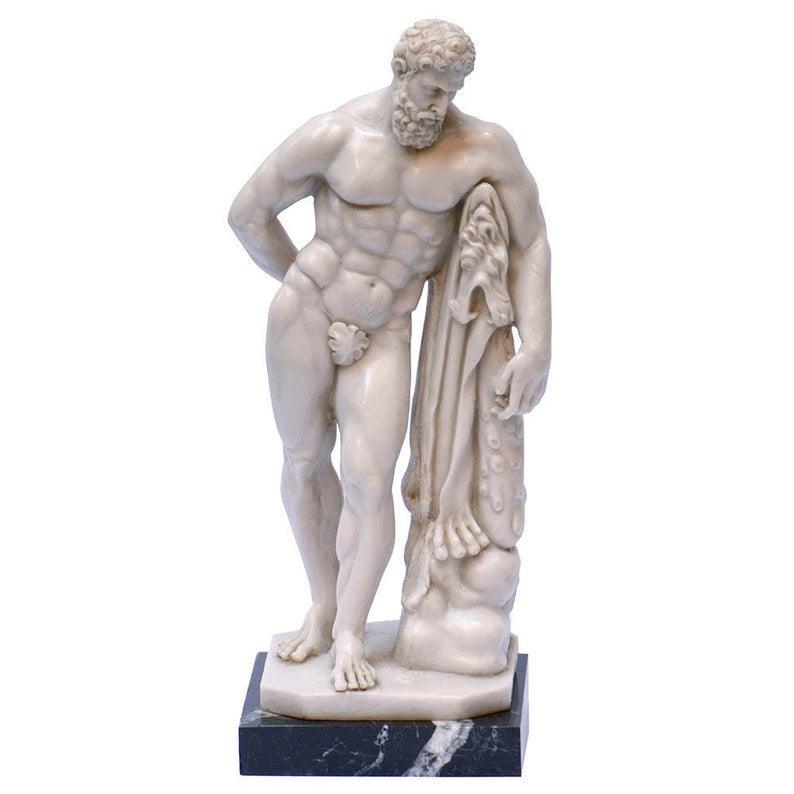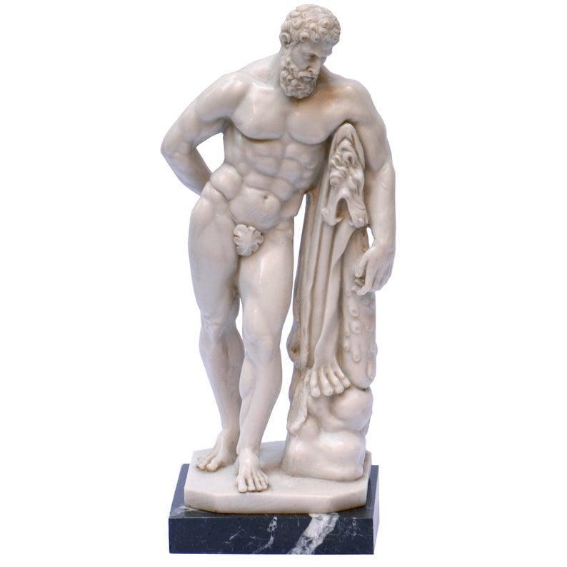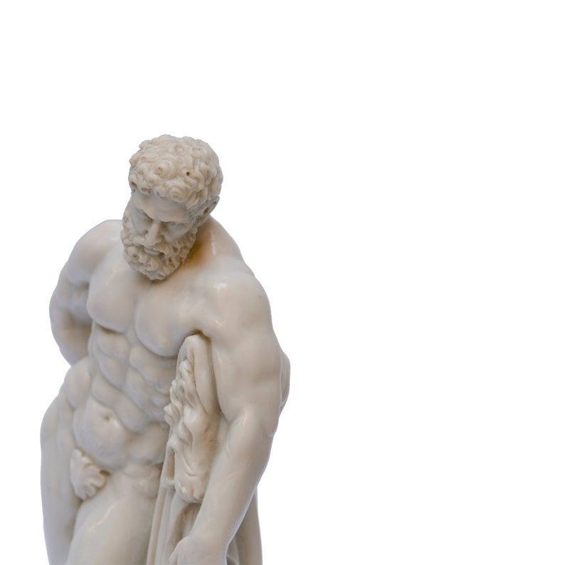 A Museum-shop’s production. Handmade product made in Italy. Hercules Farnese reproduction in marble cast of one of the Hellenistic sculptures III century AD, displayed together with all the Farnese collection at the National Archaeological Museum, Naples. Hercules, in Greek mythology Heracles, symbolizes the triumph of human courage and strength. Furnish your apartment in classic style.