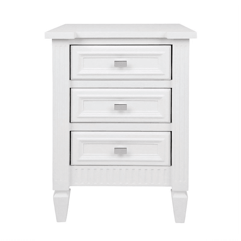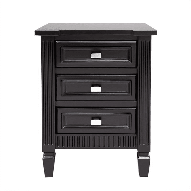 Showcase vintage-inspired design with the classic looks and tapered legs of the Carter Bedside Table. Solid Wood frame in a Black satin finish for a durable structure with elegant good looks. Features ample storage space of everyday items and knick-knacks. Face of the drawers showcase carved panelled detailing for added style to your décor. Tapered legs for classic looks that offer stability. Table top is perfect for displaying a decorative vase of your freshly cut flowers or your bedside lamp. Art deco styling with a modern twist, that will sit perfectly in your bedroom