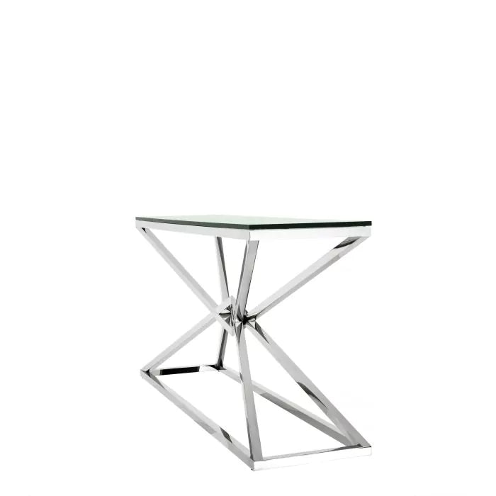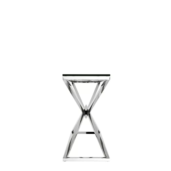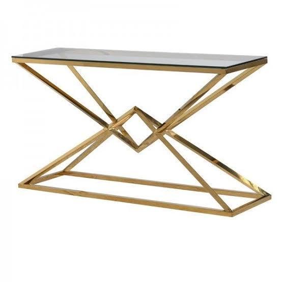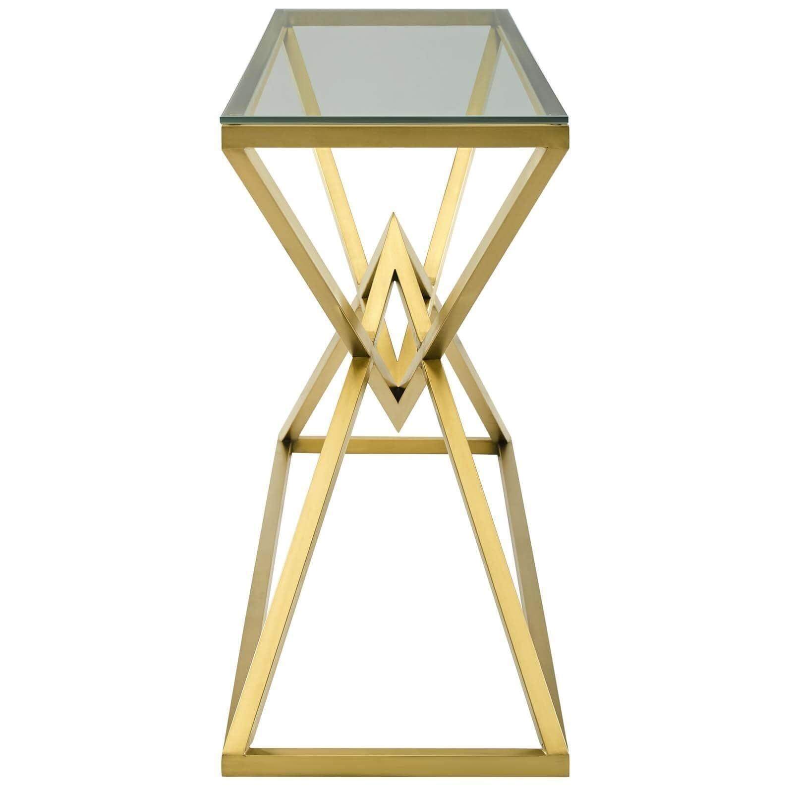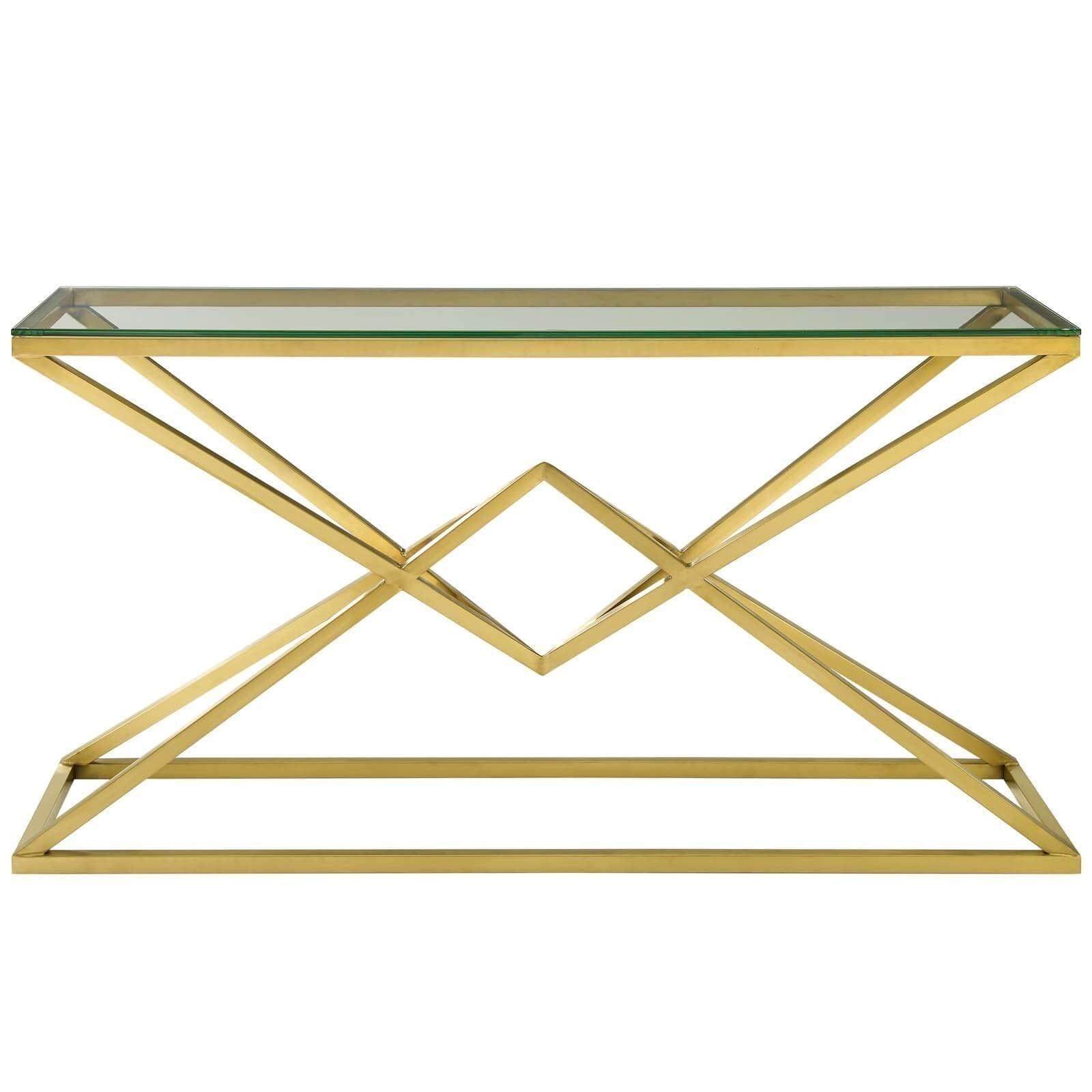 Cavalli Console Table. The Connor range is truly stunning, with the sleek lines giving each piece a somewhat futuristic feel. Underneath the rectangular glass top of the console table, the base features a modern diamond knotted design. Transform your interior by using with a pair of Cavalli side, placing one each side of a sofa. The Cavalli Console Table will stand proudly behind your sofa, and modernize any living space.