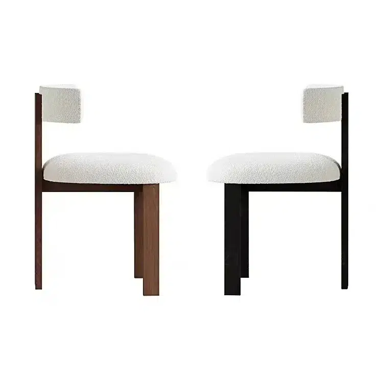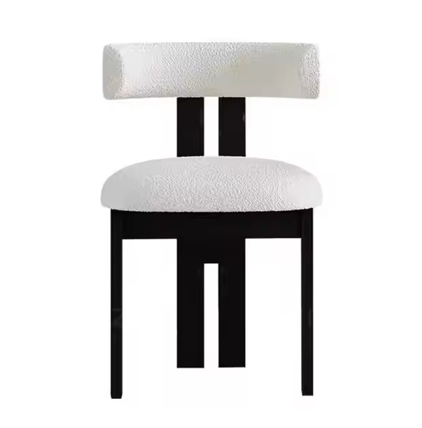 A mid century chic appeal ensures this chair will provide years of enjoyment in your contemporary or traditional home. A black solid ash wood painted frame complements the perfect white boucle upholstery perfectly.