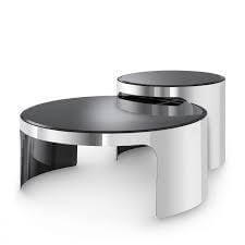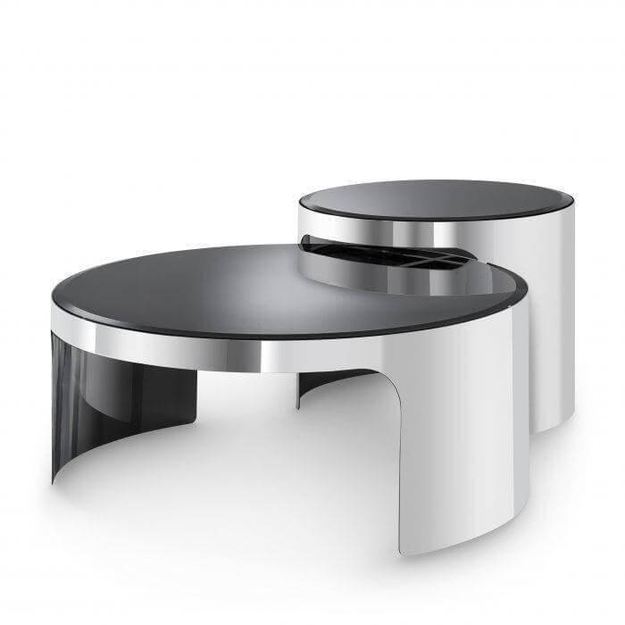 Cerutti Chrome Black Glass Coffee Table Set
