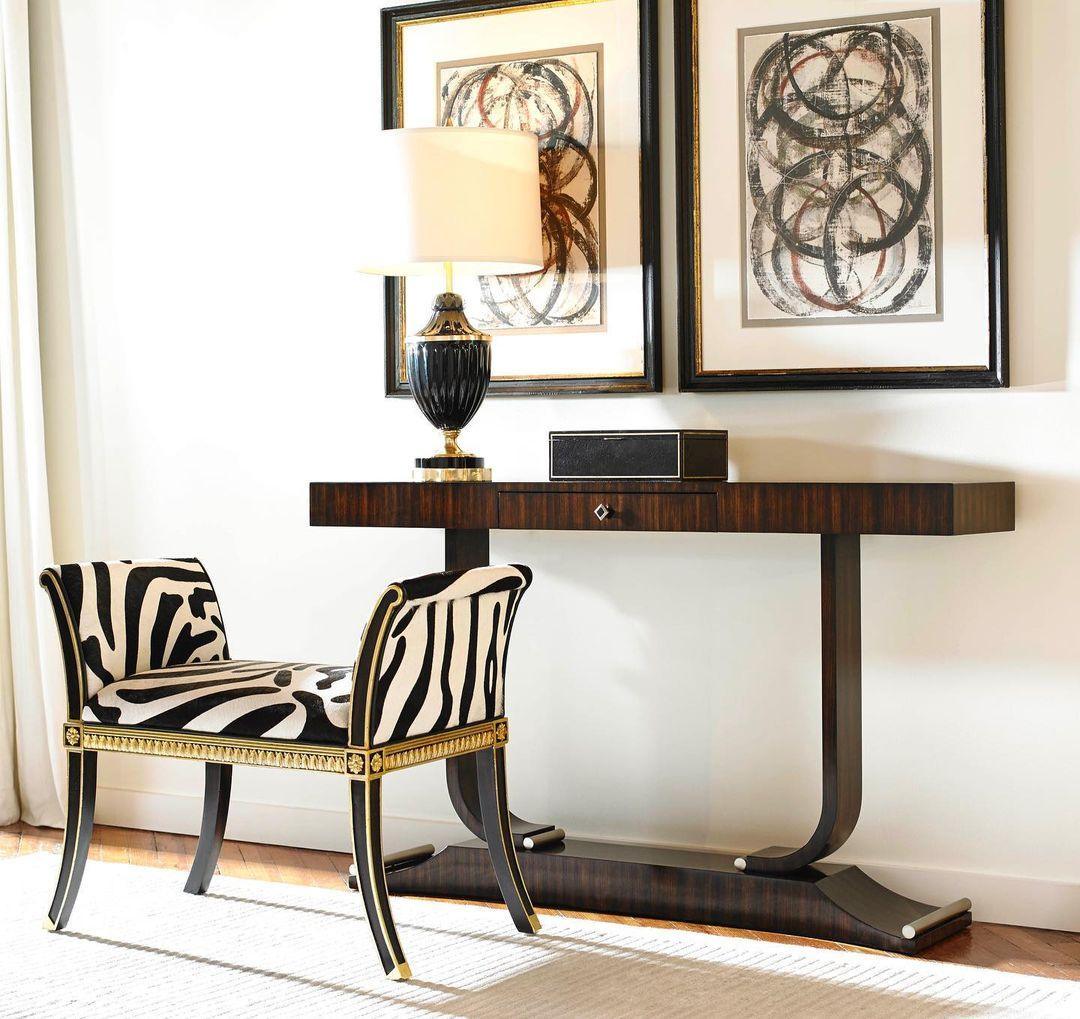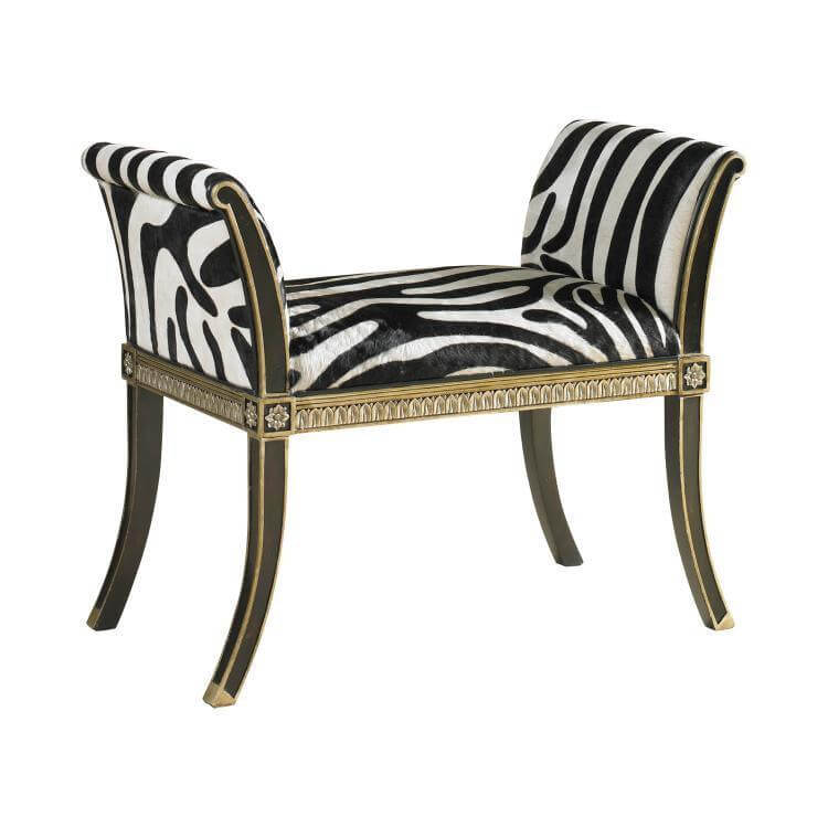 Chablis Zebra Leather Black Lacquer Gold Stool