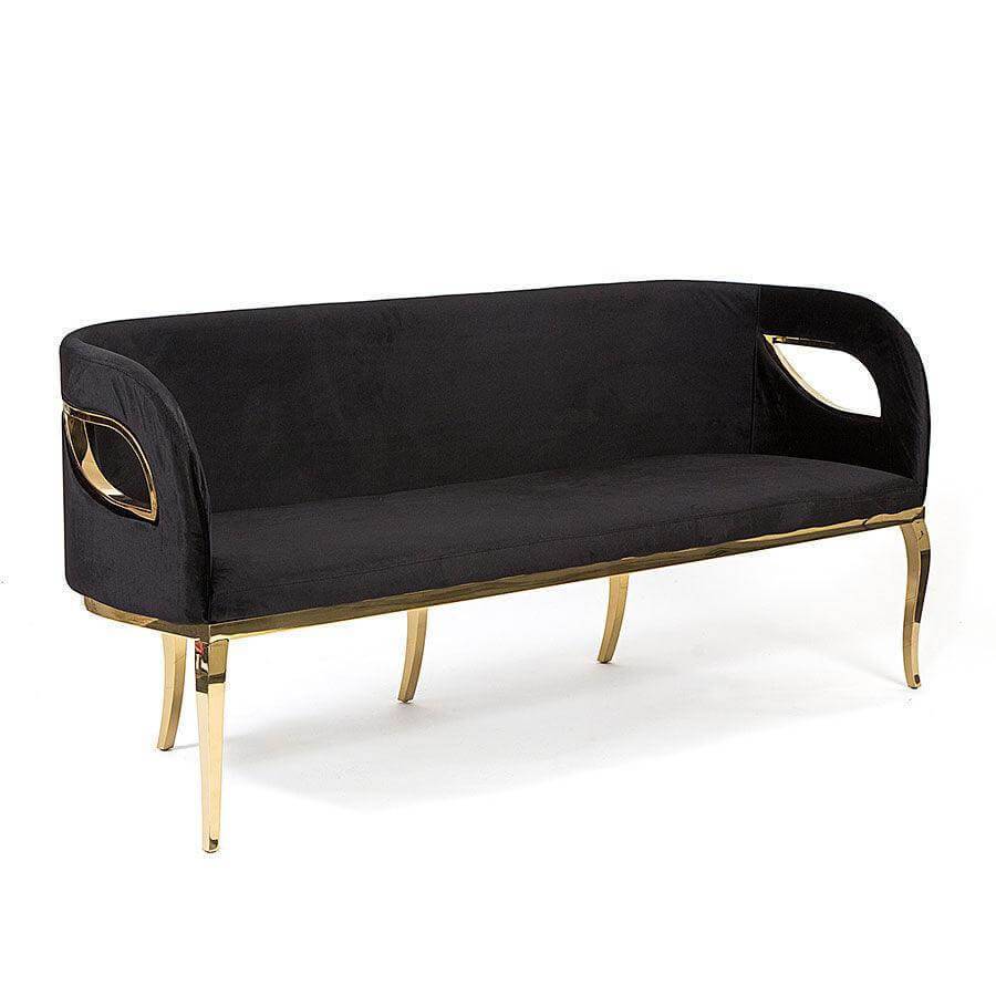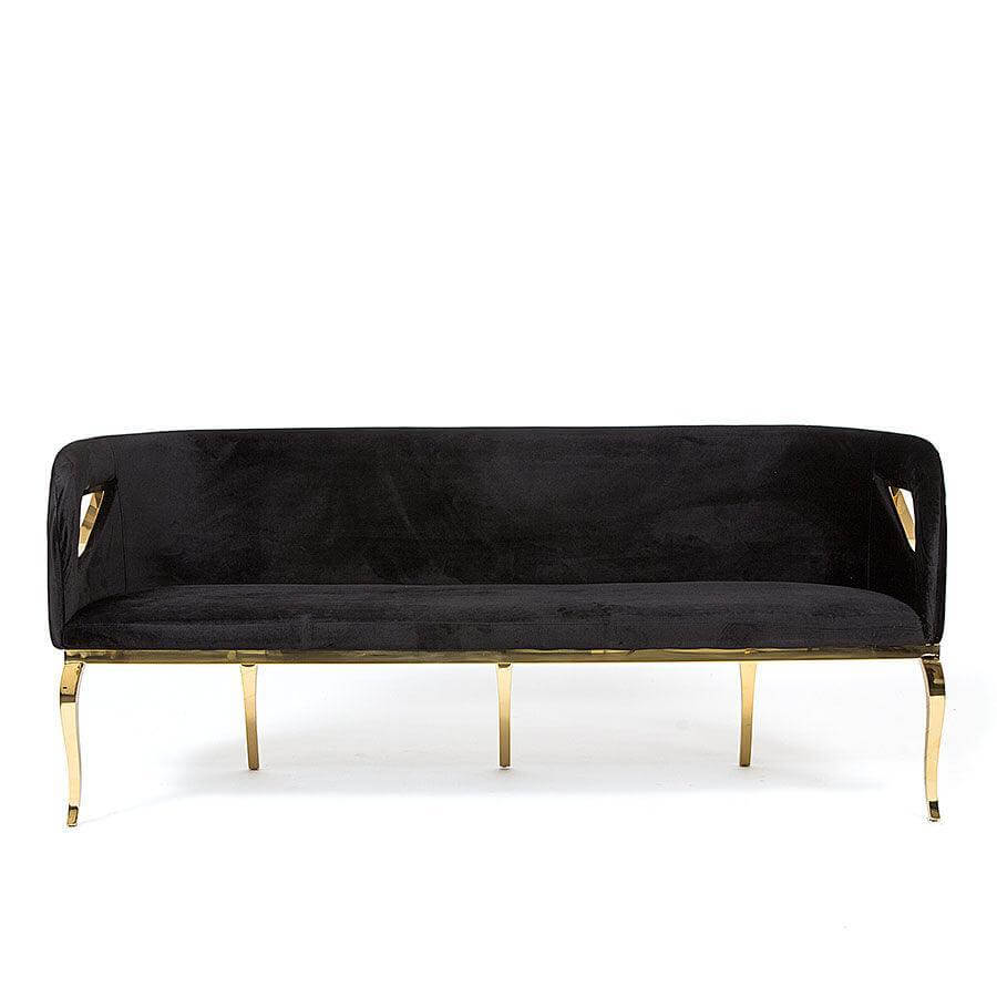 Chandra Black Velvet Brass Sofa 183cm