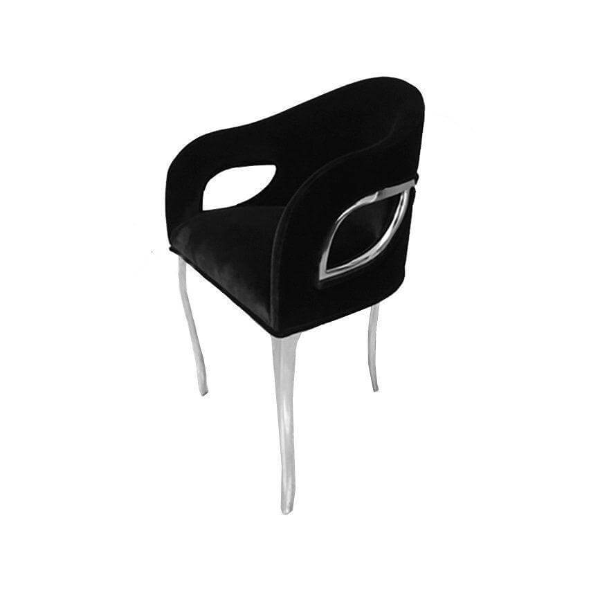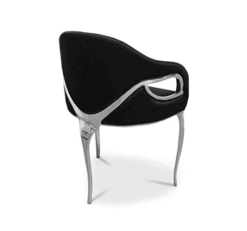Chandra is both bold and daring. The modern edge in this dining chair exudes the feeling of vintage glam, while polished nickel metal bands delicately bind the chair highlighting the sculpted fluidity of the tight back upholstery. Available in Gold, brass, nickel, chrome and copper plated metal with high gloss or matte finish.