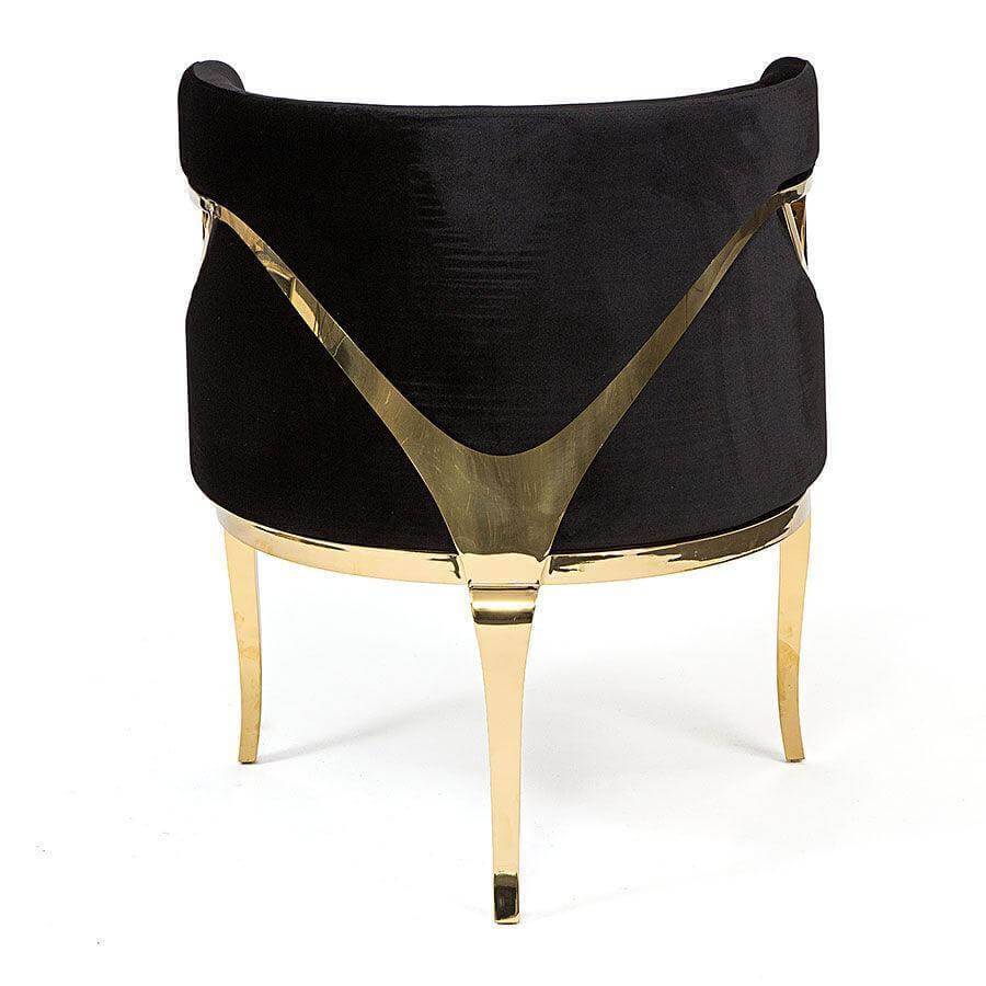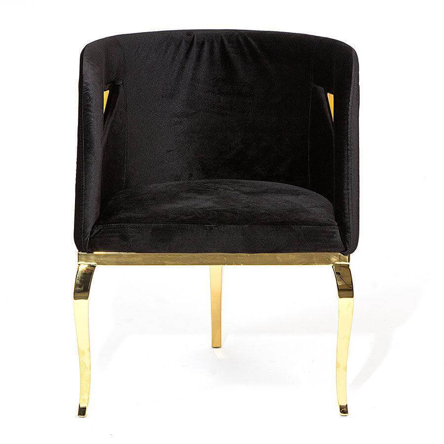 Chandra is both bold and daring. The modern edge in this dining chair exudes the feeling of vintage glam, while polished Brass metal bands delicately bind the chair highlighting the sculpted fluidity of the tight back upholstery. Available in gold, brass, chrome plated metal with high gloss or matte finish.