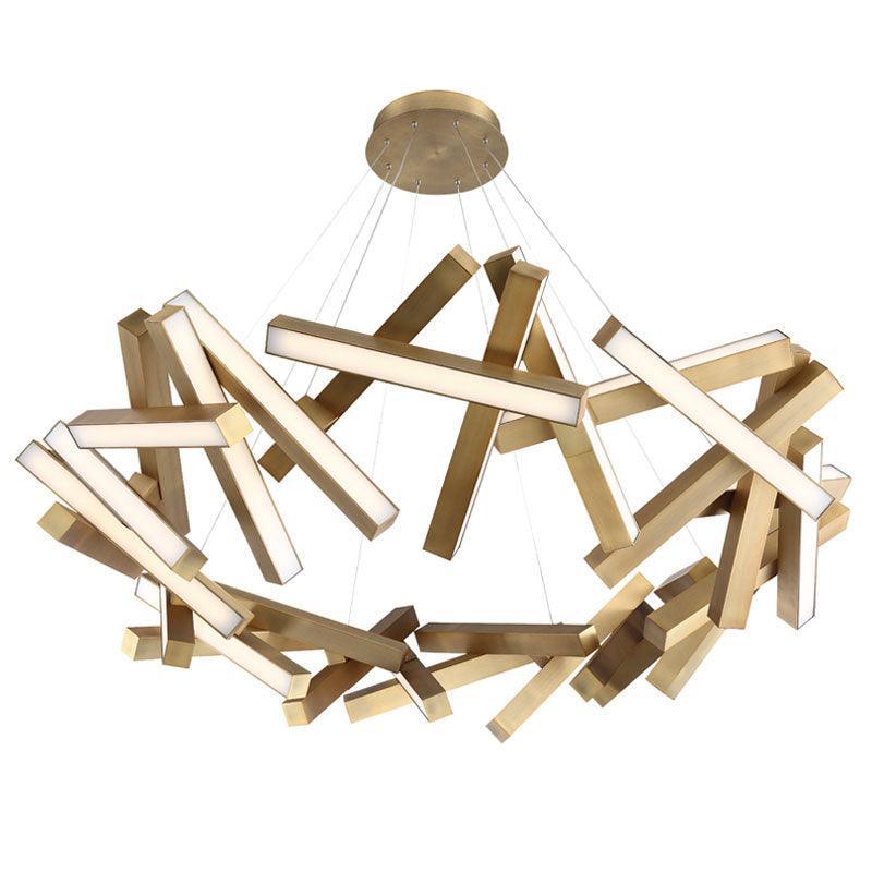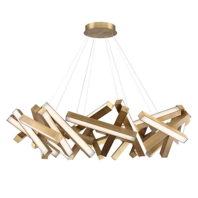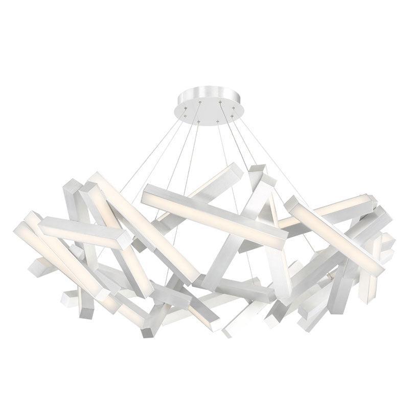 Like piano keys falling through the air, the Chaos Chandelier freezes a moment in time with breathtaking elegance. Ultra-thin powered aircraft cables stabilize the suspension, holding everything in place with as little visual interference as possible. Each section of this sculptural form is equipped with consistent, highly efficient LEDs for refined illumination throughout. Available in two sizes. Can be used on a sloped ceiling.