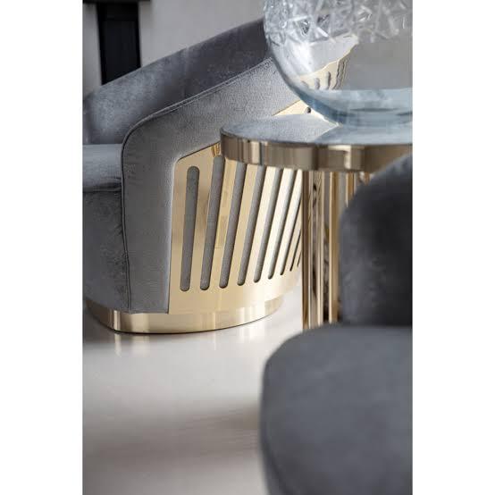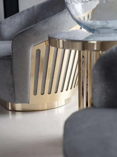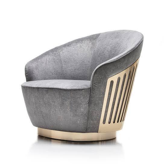 A chair that truly stands out! This swivel chair from Charisma Collection bewitches us with its welcoming silhouette complemented with luxe upholstery in leather, suede or velvet, and light gold stainless steel frame.
