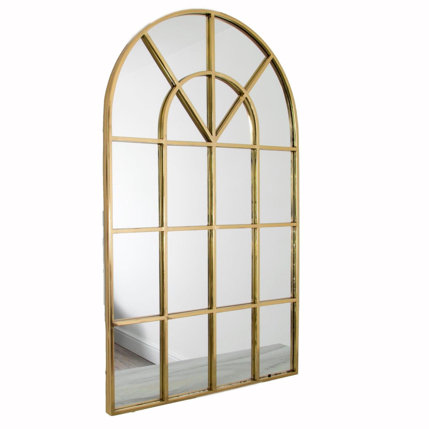 Chateau Polished Gold metal arch stainless steel mirror. Simple and elegant, arched window design.