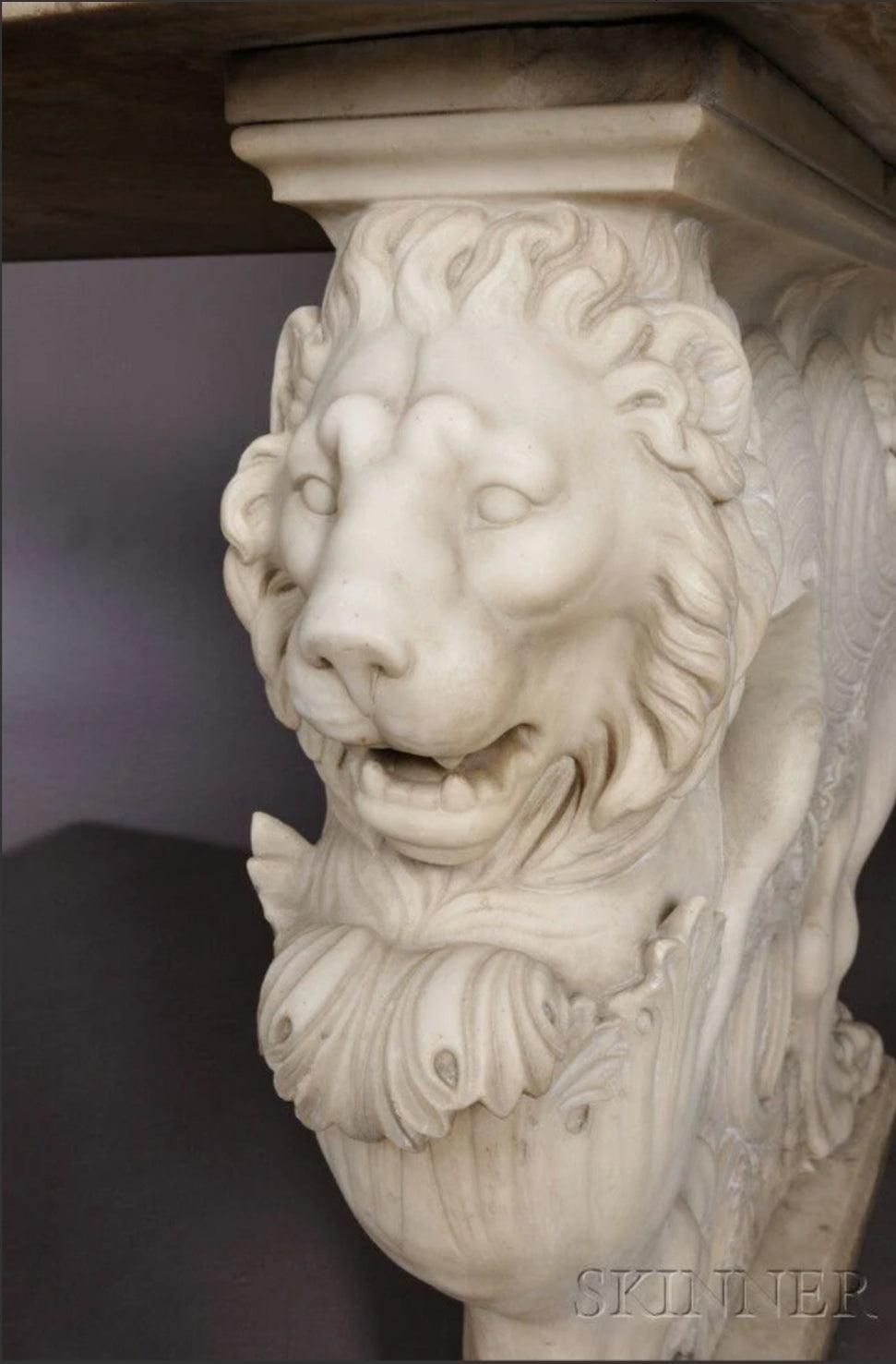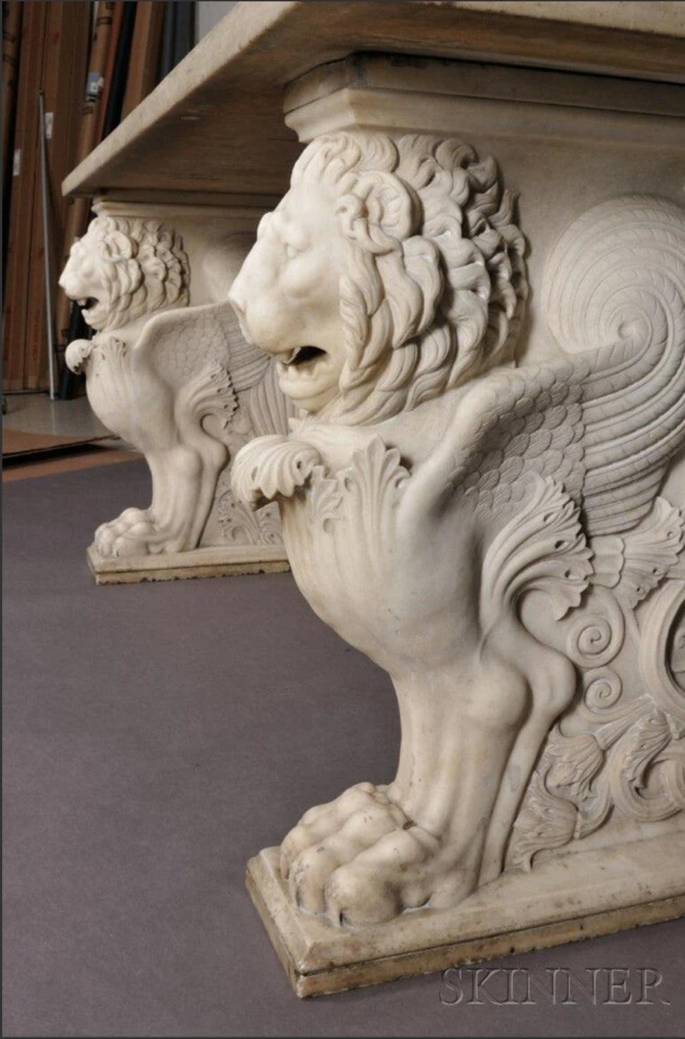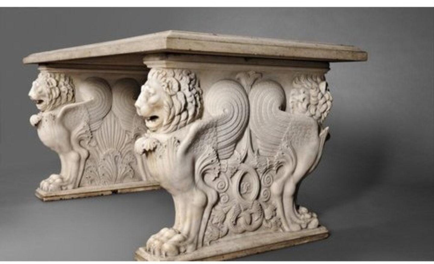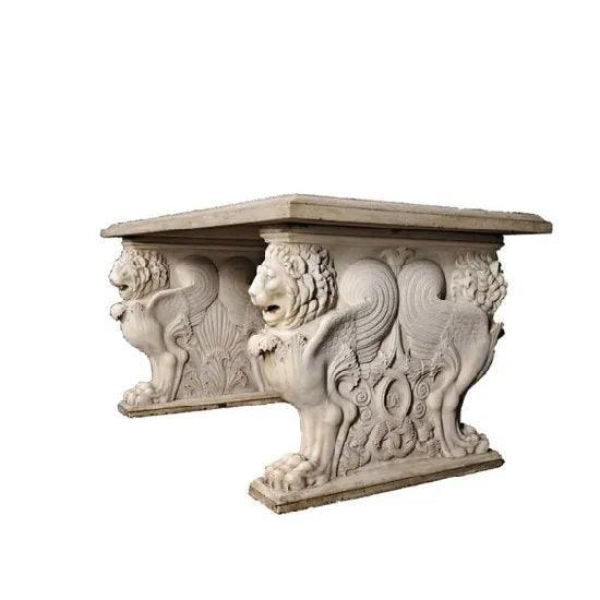 Chateau De Provence Marble Lion Pedestal Table. Available in White or antique marble finish. World class craftsmanship.