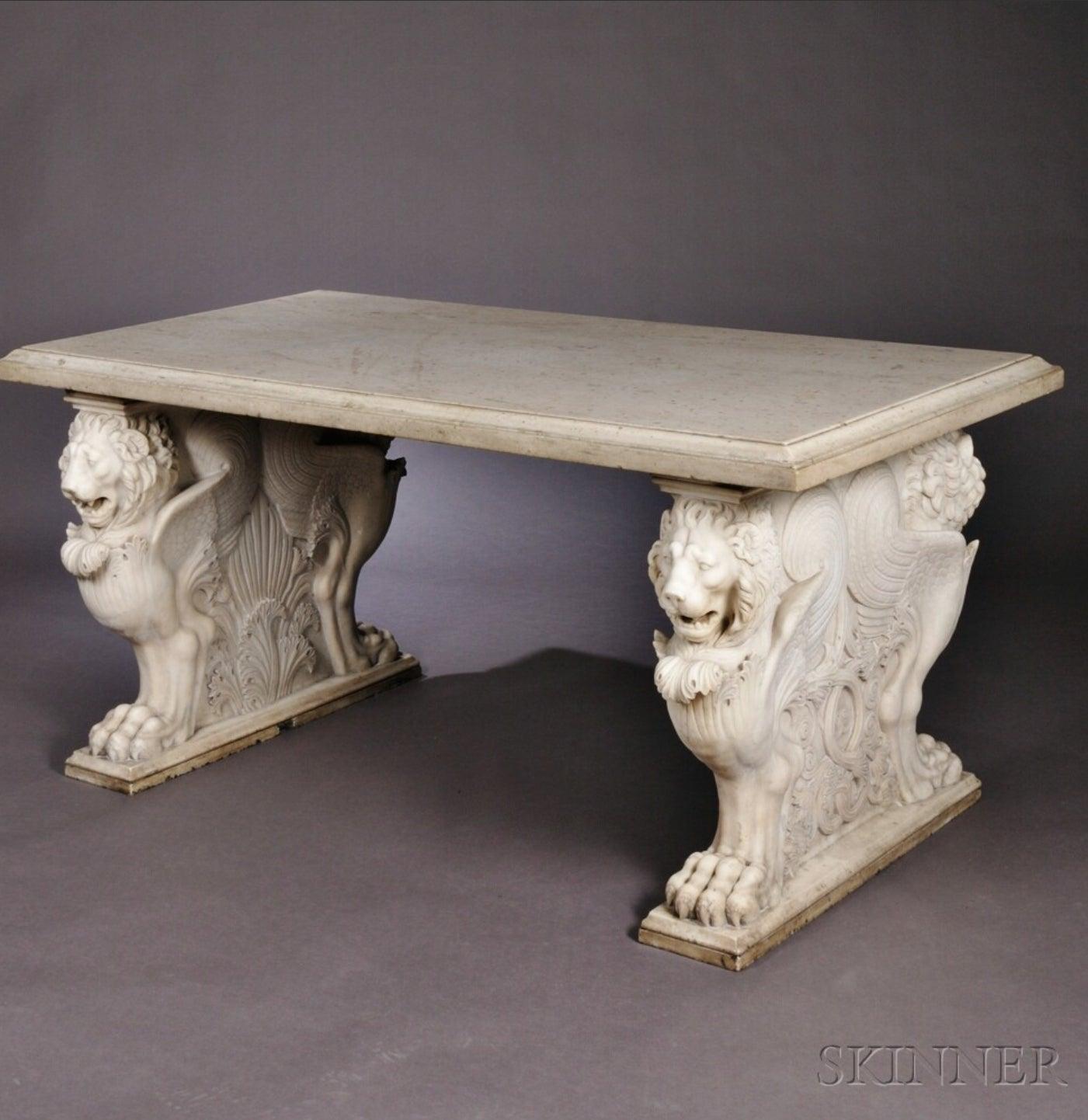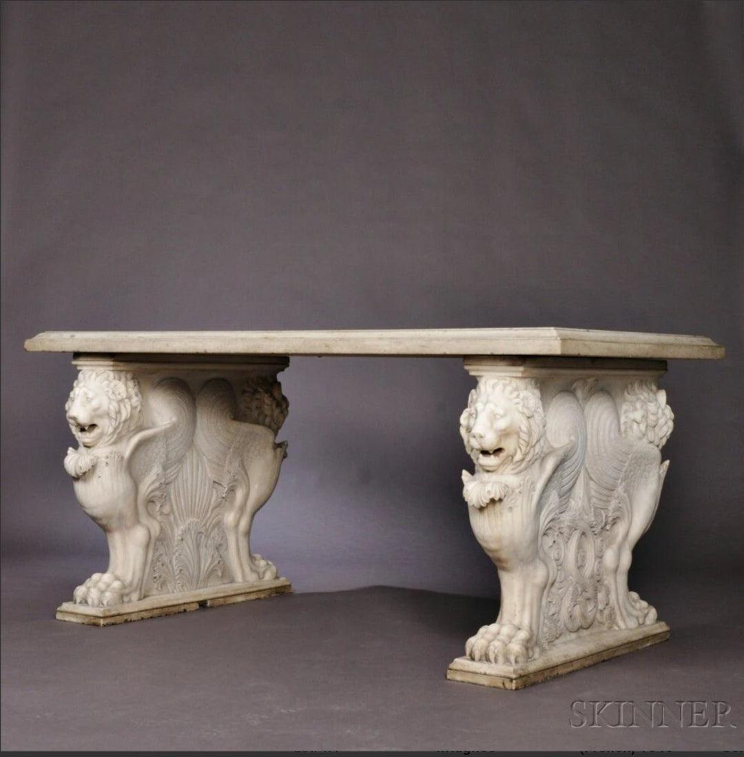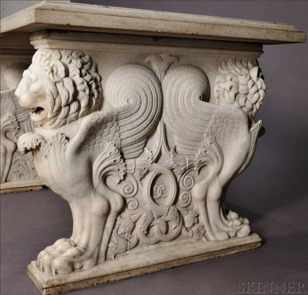 Chateau De Provence Marble Lion Pedestal Table. Available in White or antique marble finish. World class craftsmanship.
