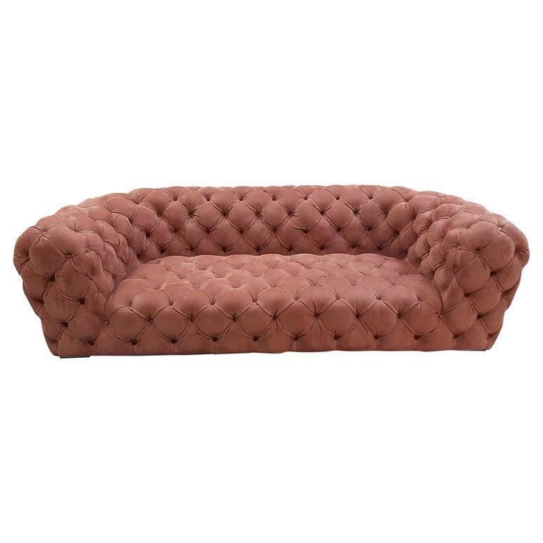 This is a highly fashionable and luxe addition to any home or commercial space. With deep-buttoned plush Blush, purple, blue or custom velvet and a curved outer frame it exemplifies timeless chesterfield luxury and makes a statement as a key centerpiece to an existing lounge room or as a suite with its two-seater partner. Featuring an ultra deep seat pad and extra soft seat and back this piece represents ultimate comfort and luxury and has more than enough room for all. Available in three or four seater options.