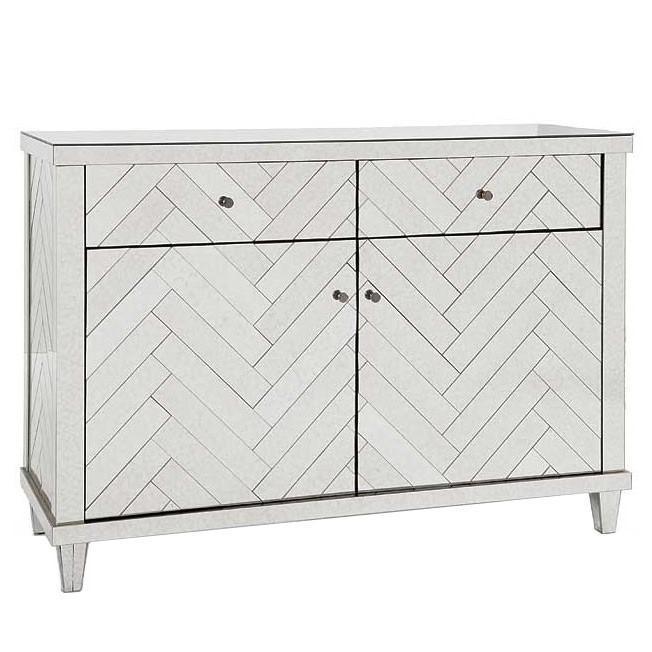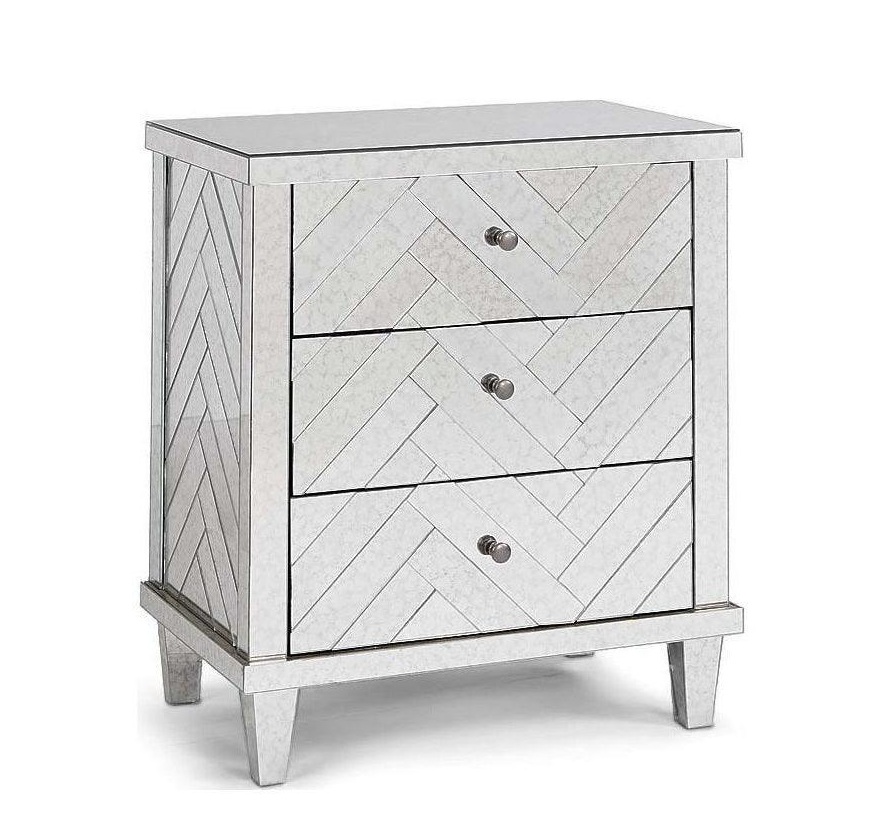 Chevron Antique Mirror Nickel Bedside Table