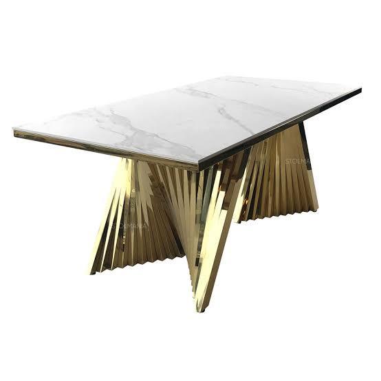 Chivas White Beige Chrome Marble Dining Table 245cm
