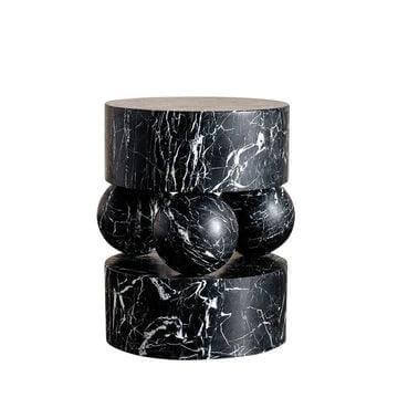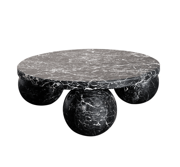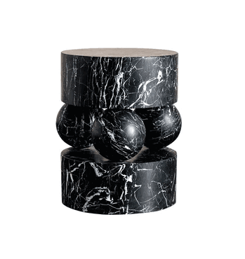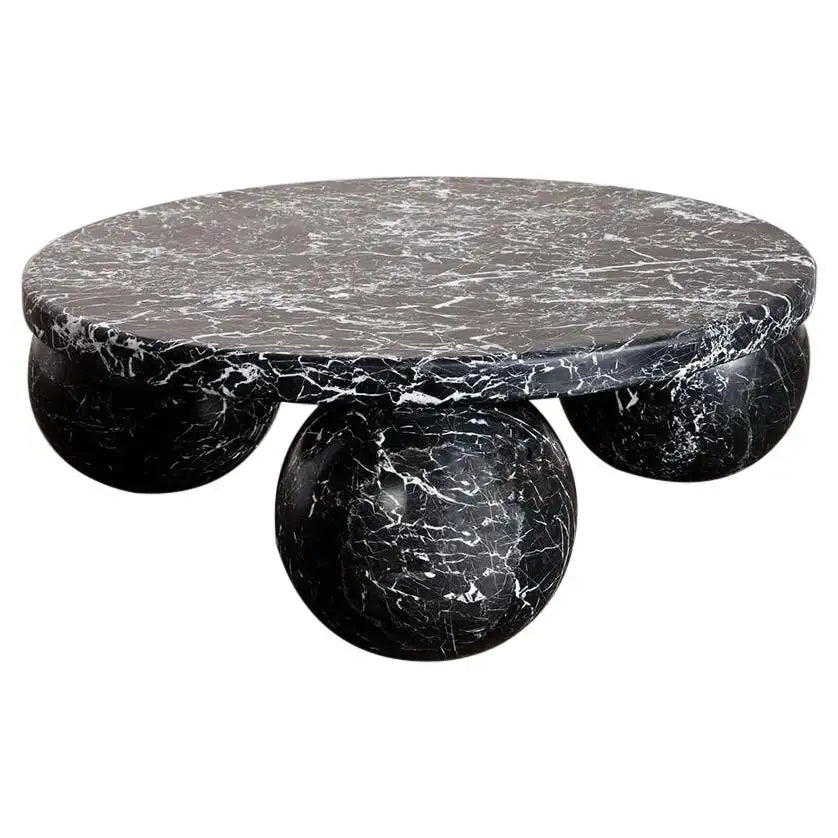 This stunning design made with beautiful handcrafted materials make this marble side table not just a wonderful piece of furniture, but a marvelous art sculpture for your home. Created by skilled artisans, this hand-crafted side table features two solid marble circular slabs divided by three marble balls. The craftsmanship involved is clear, but it remains a practical table too.