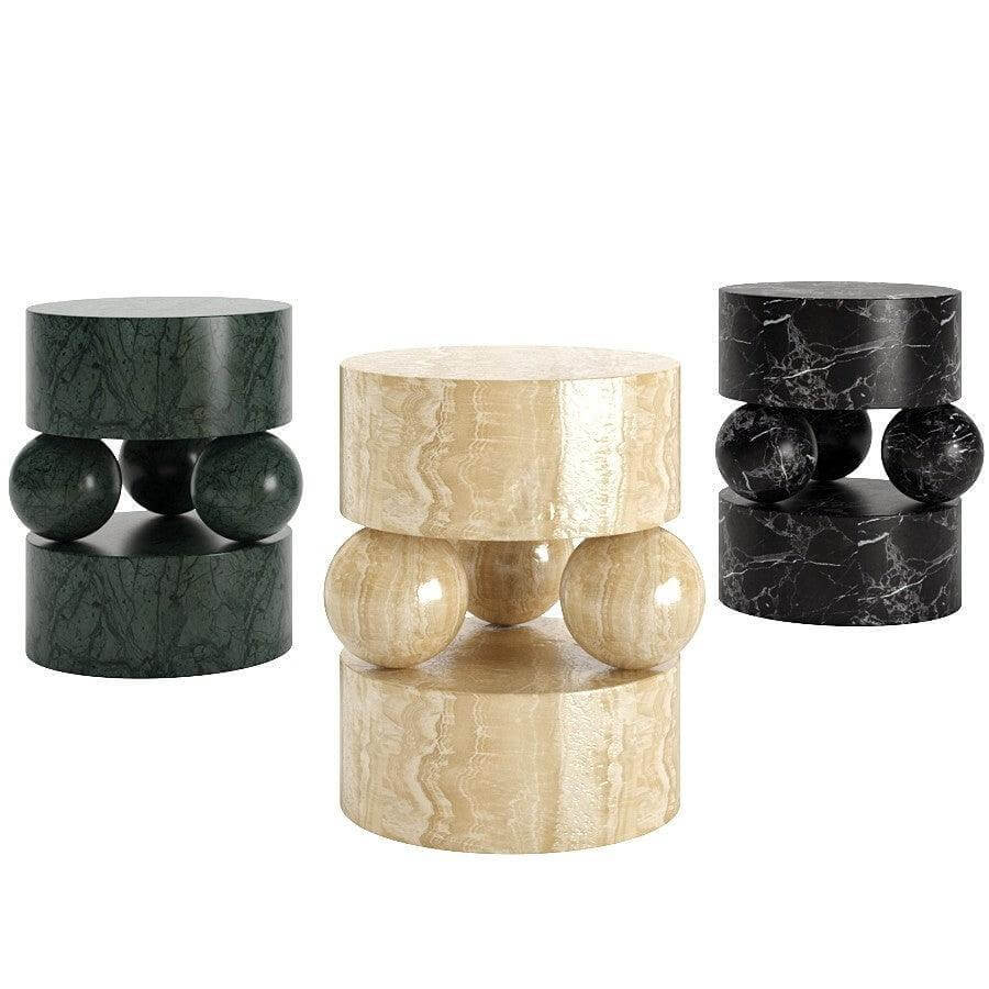 This stunning design made with beautiful handcrafted materials make this marble side table not just a wonderful piece of furniture, but a marvelous art sculpture for your home. Created by skilled artisans, this hand-crafted side table features two solid marble circular slabs divided by three marble balls. The craftsmanship involved is clear, but it remains a practical table too, a solid side table you can rely on.
