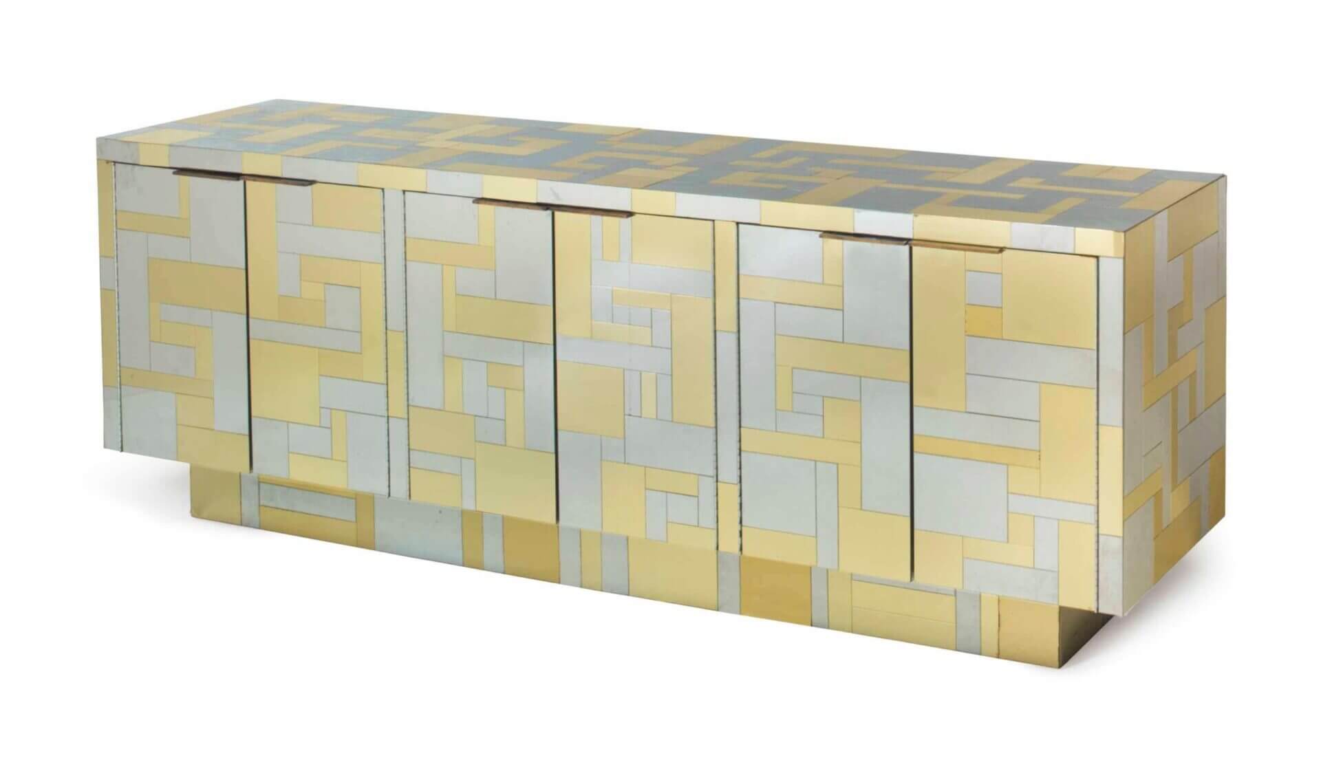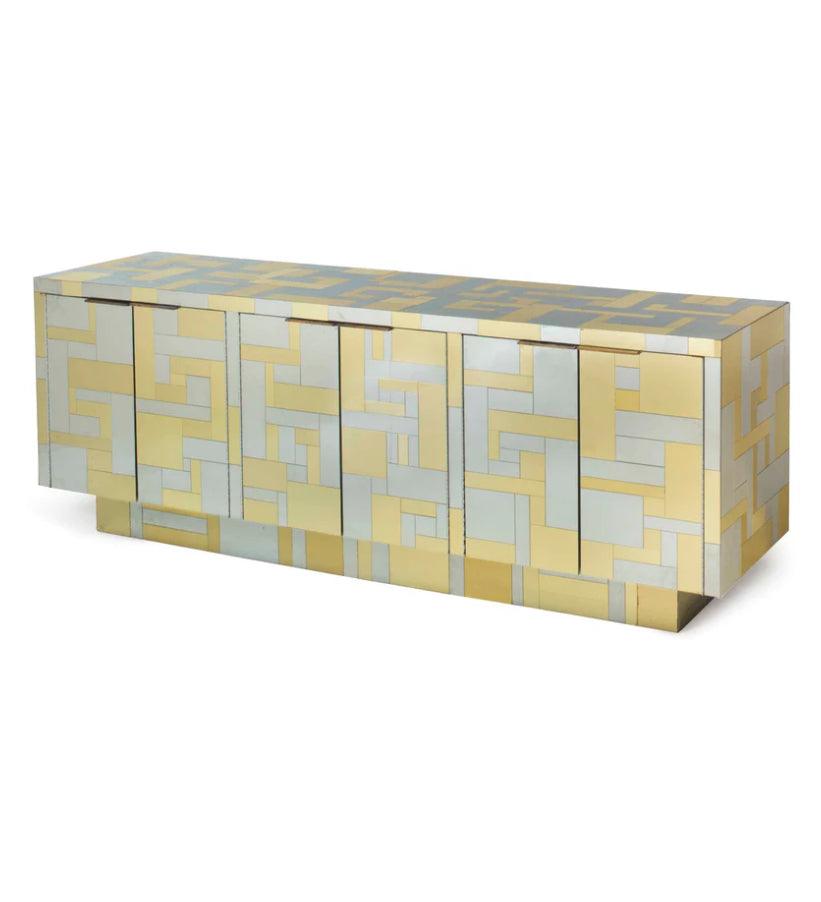 Cityscape Brass Chrome Cabinet 229cm, handcrafted in solid hardwood with chrome brass metal cladding. This console storage cabinet is designed to impress.