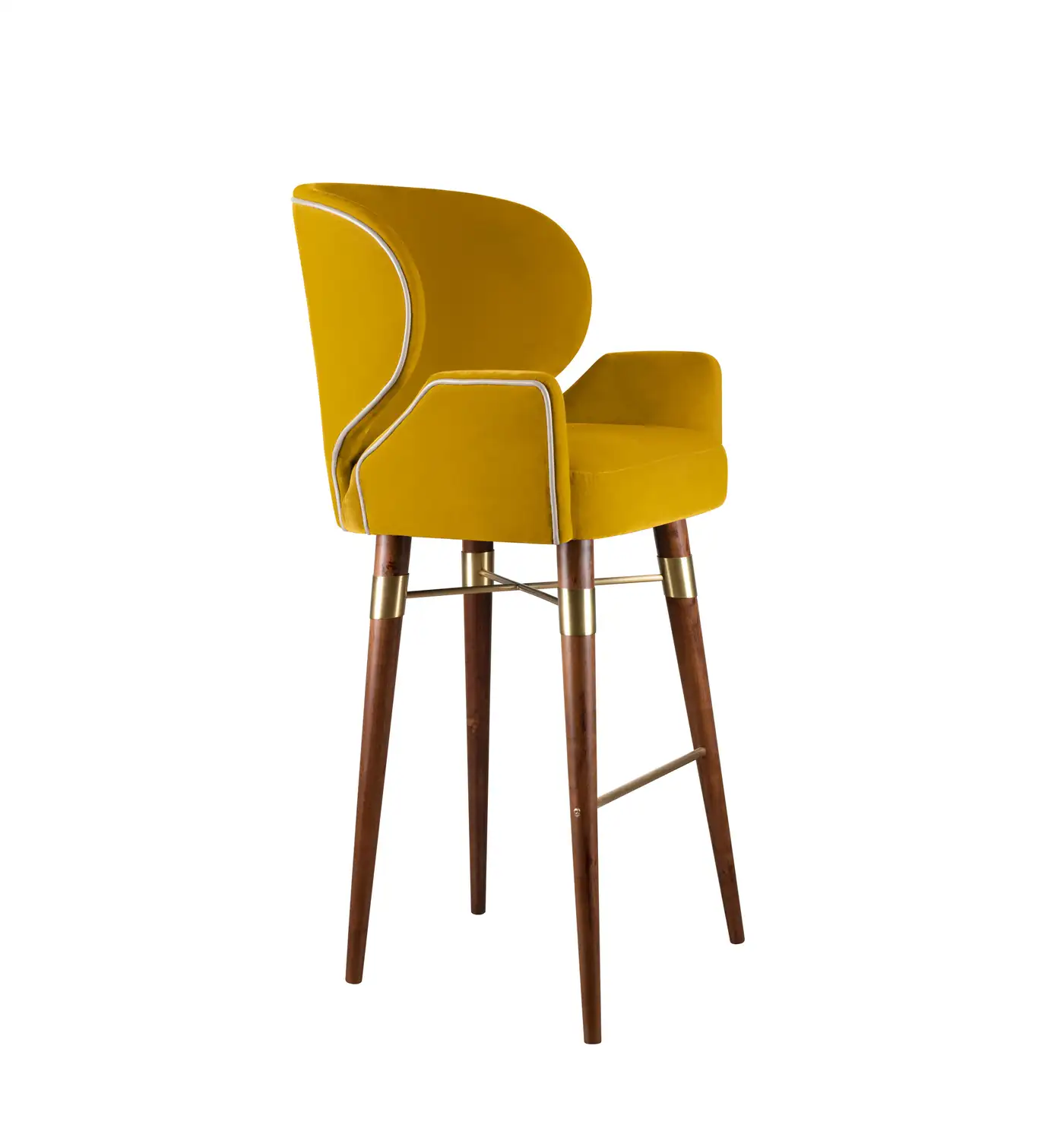 Clark Yellow Velvet Walnut Brass Counter Stool
