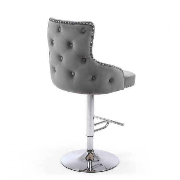 Claude Light Grey Velvet Tufted Chrome Counter Stool
