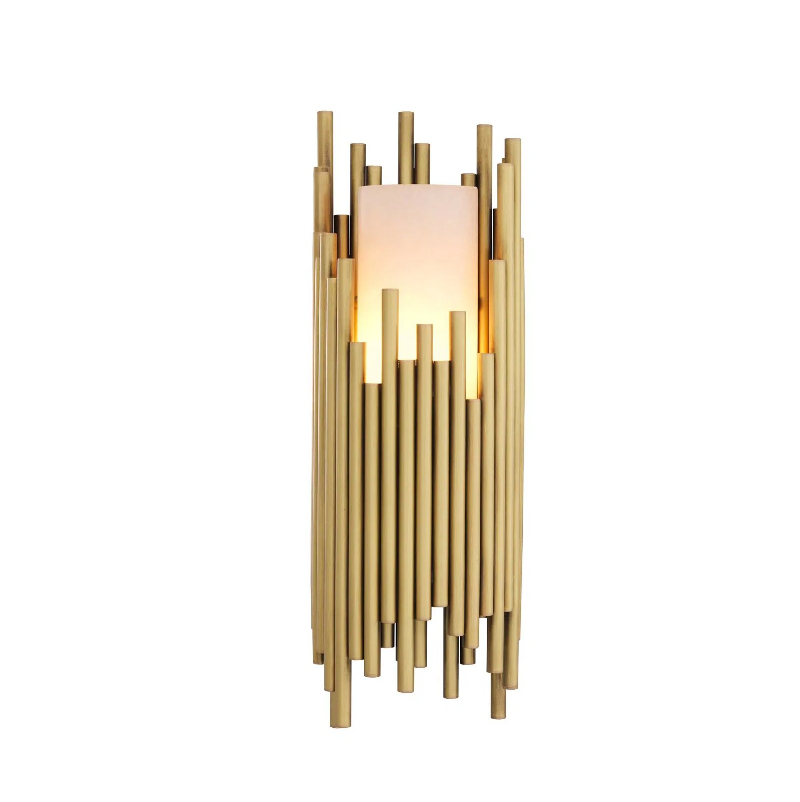 The Clement lamp is made of white alabaster stone and is decorated with several brass pipes in an brushed brass finish. Fits into both classic and modern homes.