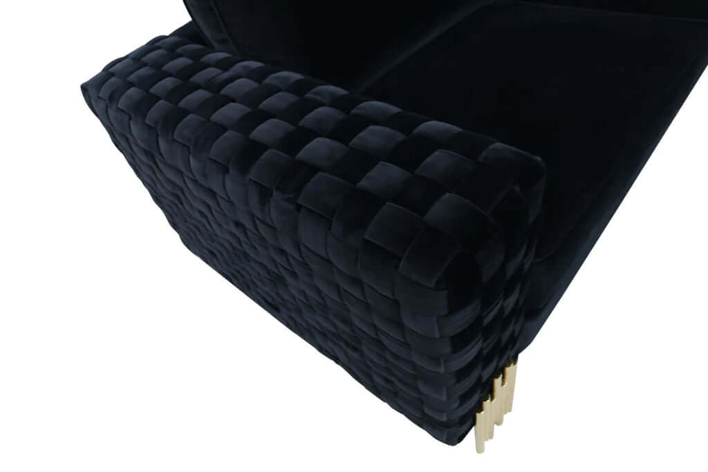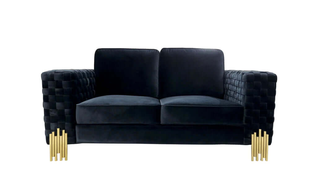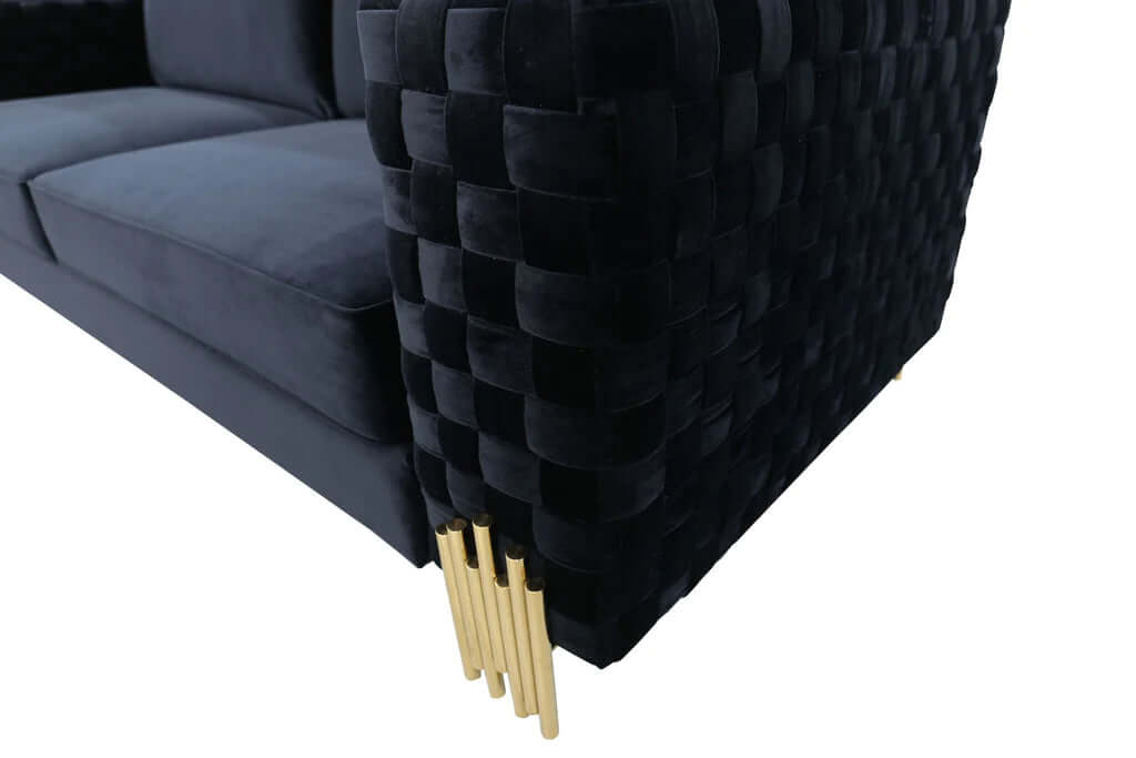 Clement Divani Black Velvet Gold Sofa 181cm