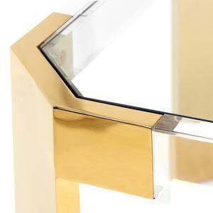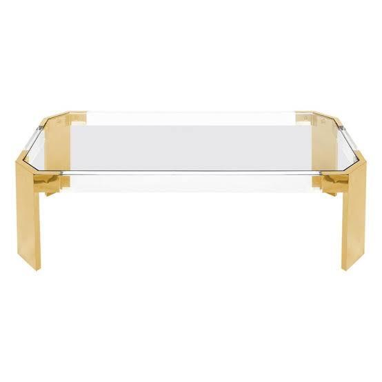The Cocktail Rectangular Coffee Table is all about angles and the beauty of polished gold, glass, and Lucite. You cannot go wrong choosing this winning combination! With dimensions that pair well with large sectionals and sofas, the Cocktail Rectangular Coffee Table makes an elegant centerpiece in any living room.