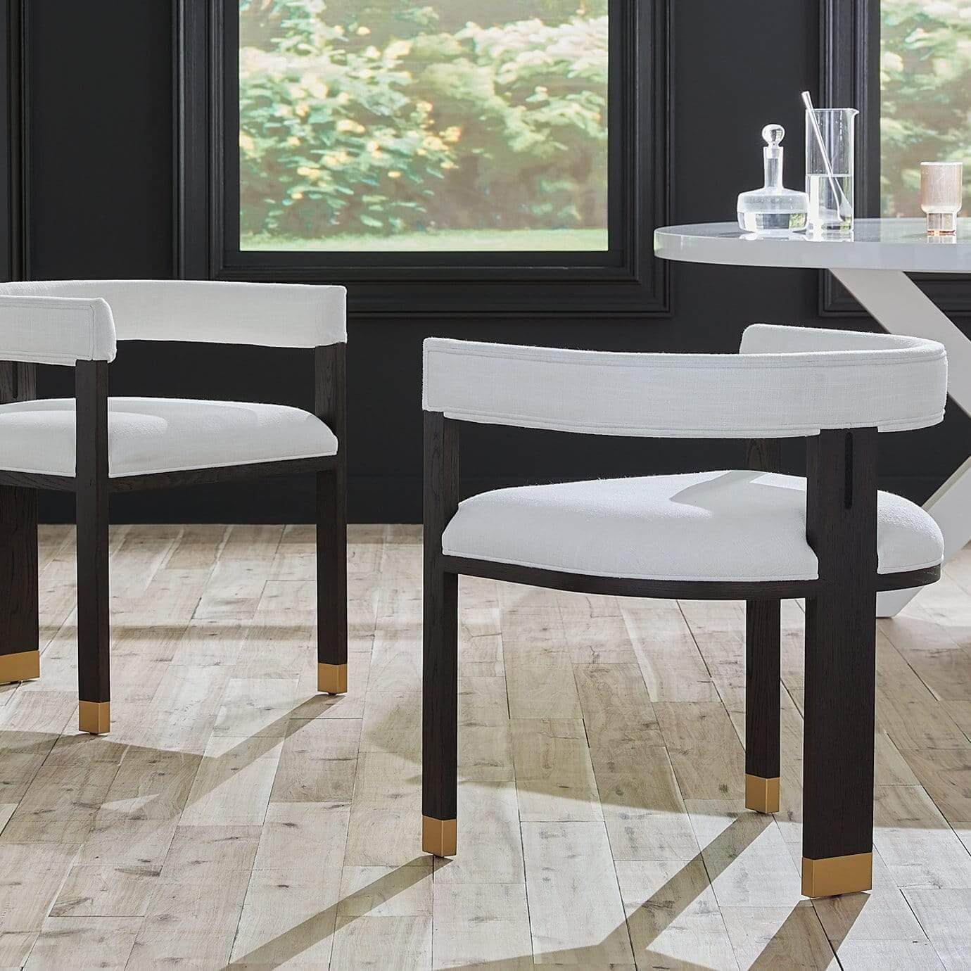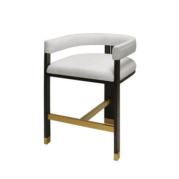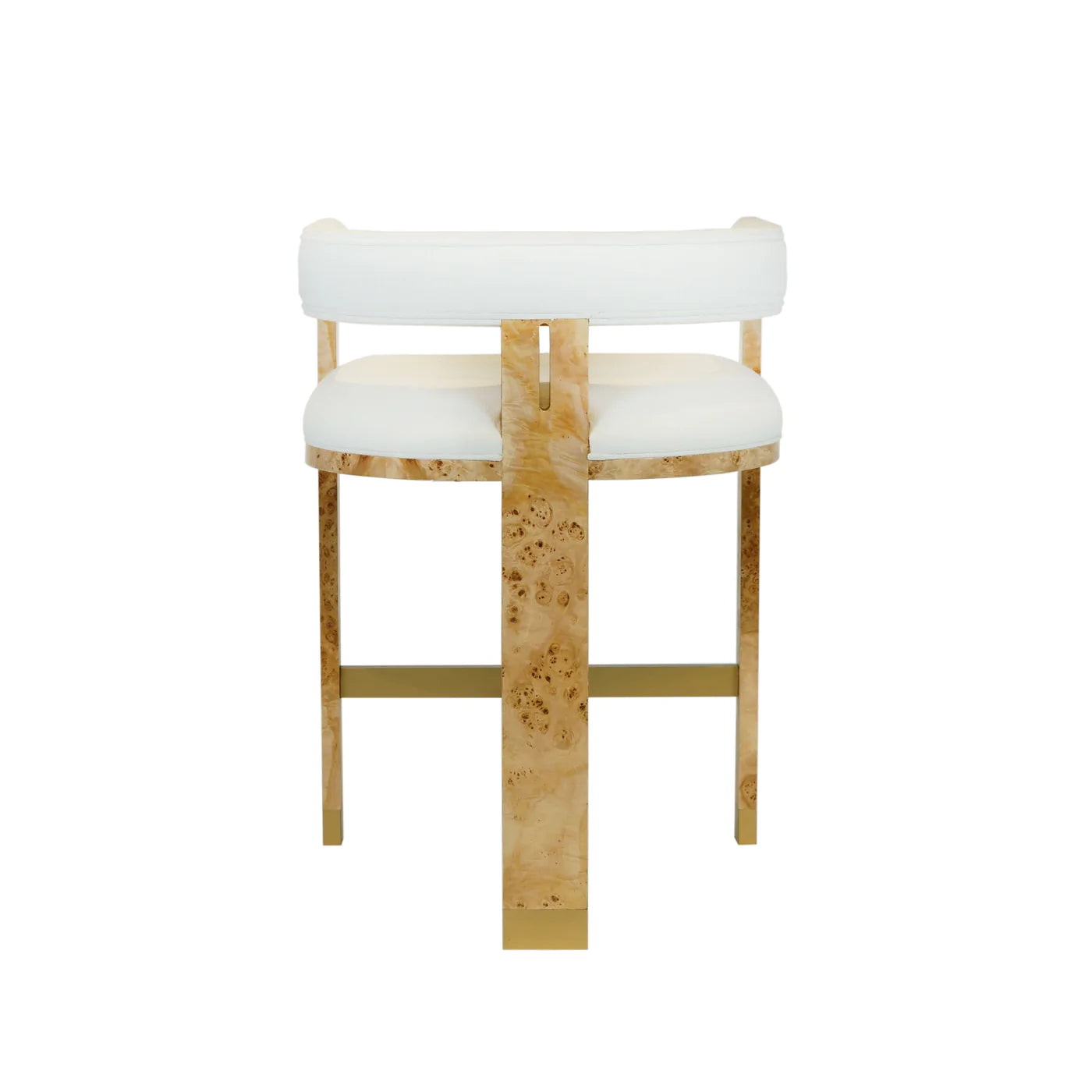 • Connor Burl Wood White Linen Brass Counter Stool