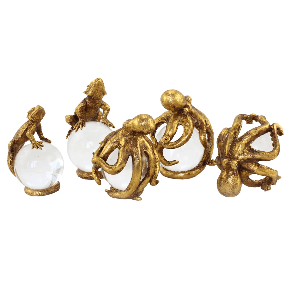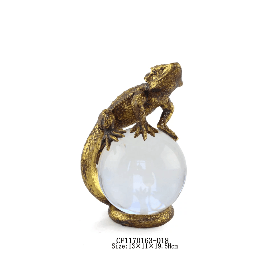 Beautiful Gilded animals perched on polished crystal ball
