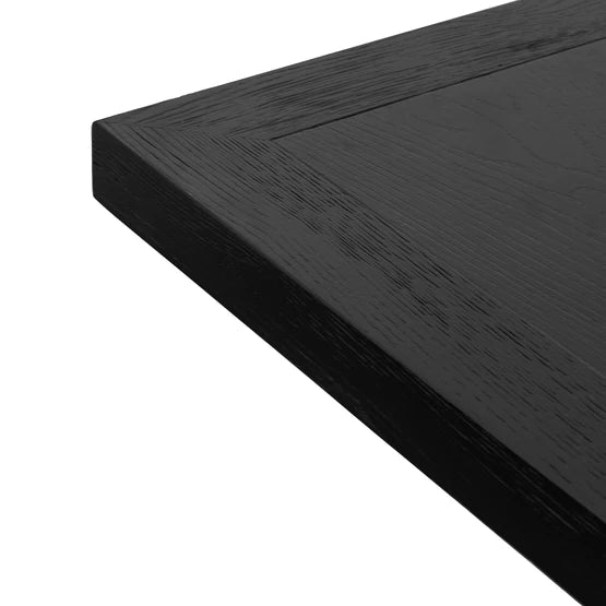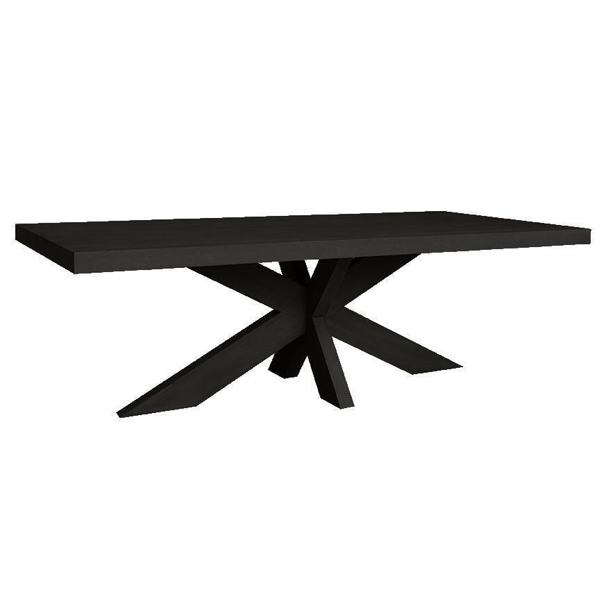 The Cubano dining table with it’s straight lines and clean expression is another stylish Italian inspired design. The Centre feature is the leg detail of this magnificent dining table. A crisscross look and feel is the key element of design making the placing of dining chairs around the table easy and less cumbersome. The Cubano black oak finish dining table can accommodate 8-10 chairs depending on size.