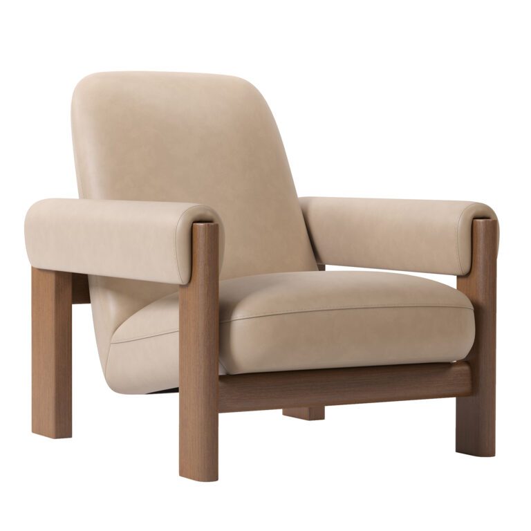 Damien Beige Leather Oak Armchair