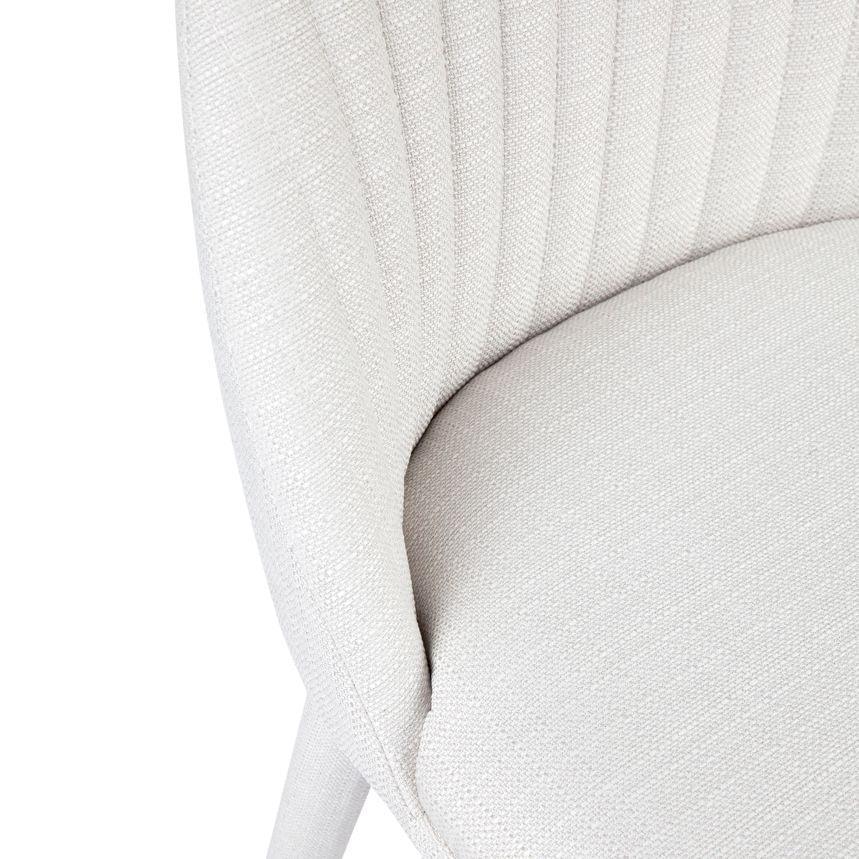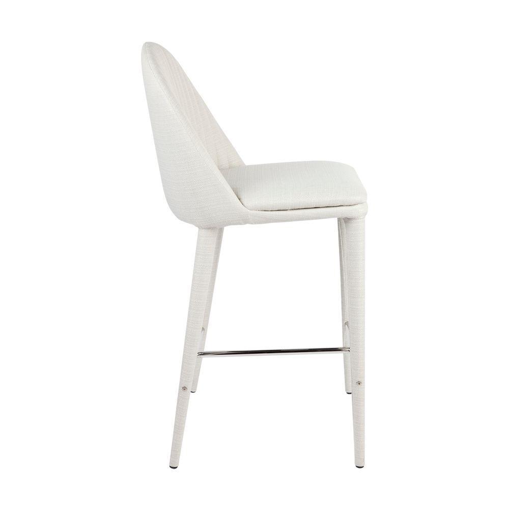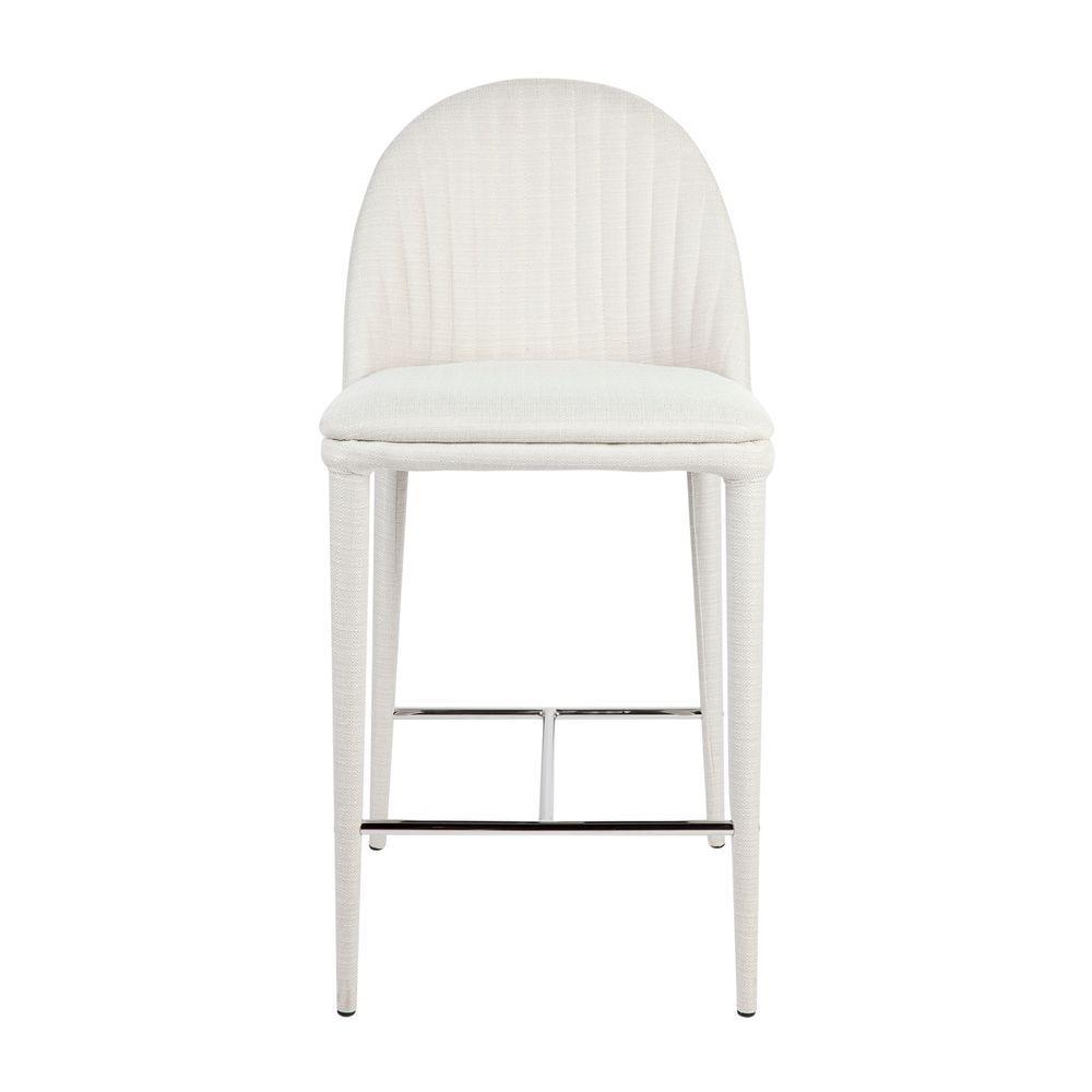 Dante Panelled Kitchen Counter Stool – White upholstered kitchen stool in a woven polyester fabric and cushioned seating with detailed stitched paneled back and sturdy metal legs upholstered in the same fabric.
