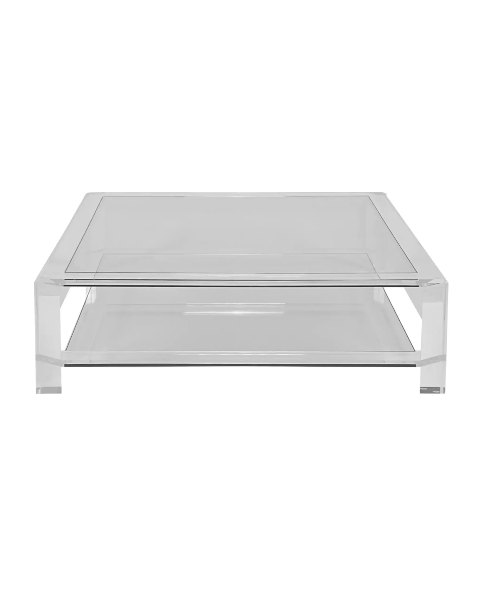 Darcy Lucite Square Coffee Table. Large Acrylic Square Coffee Table. The acrylic and glass this coffee table adds contemporary flair to any living area.