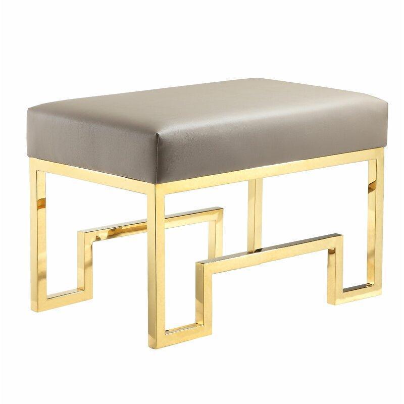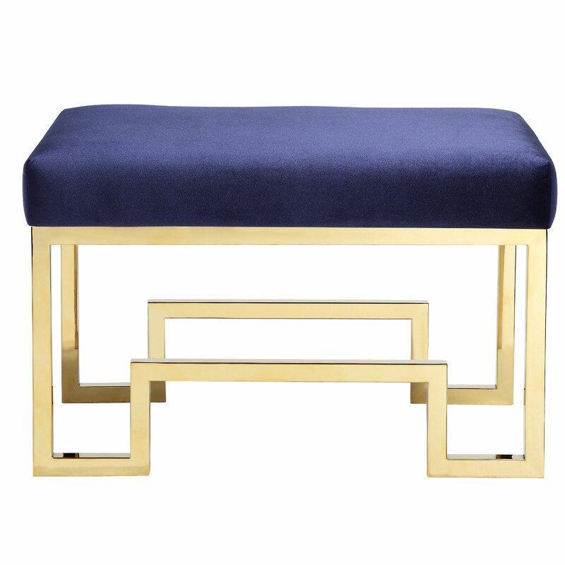 Declan Emerald Velvet Gold Ottoman or accent stool with angular metal base topped with a rich velvet cushion combine to create a luxurious seating experience.