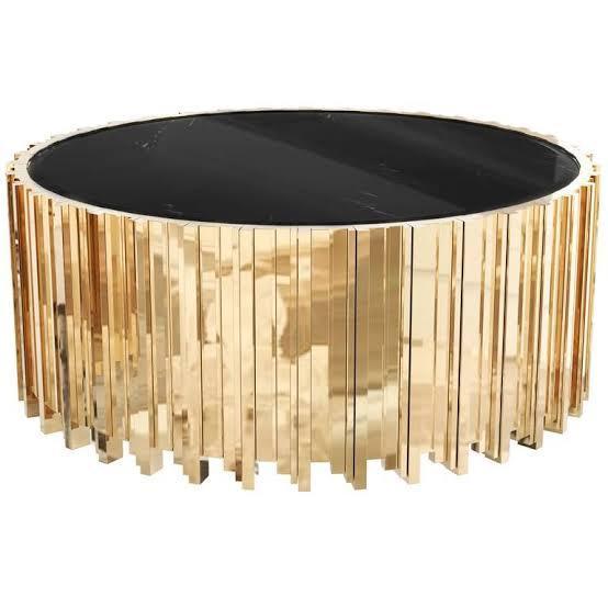 This Demure exquisite stainless steel with gold finish handmade and handcrafted coffee table is truly a masterpiece in creation and design. Unique in every form, manner and style that is simply in a class of its very own. Made from black marble and stainless steel with polished gold finish