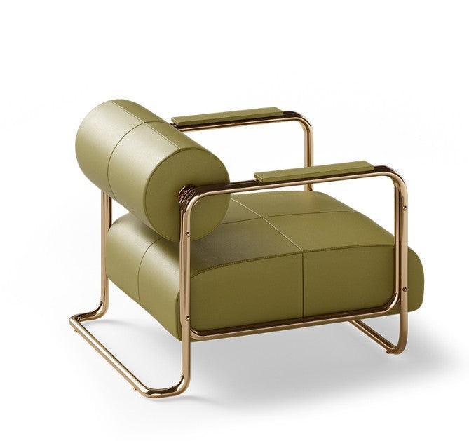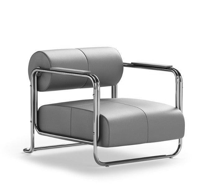 Denalli Light Grey Leather Chrome Armchair