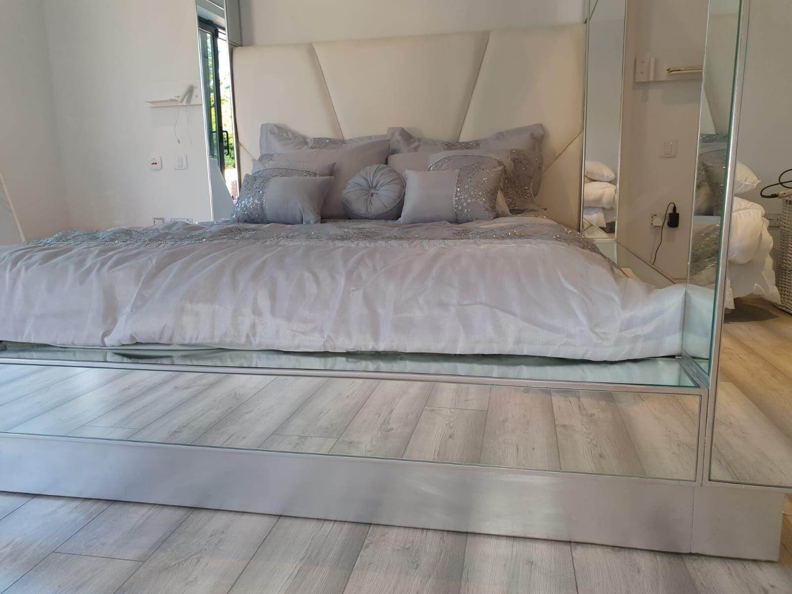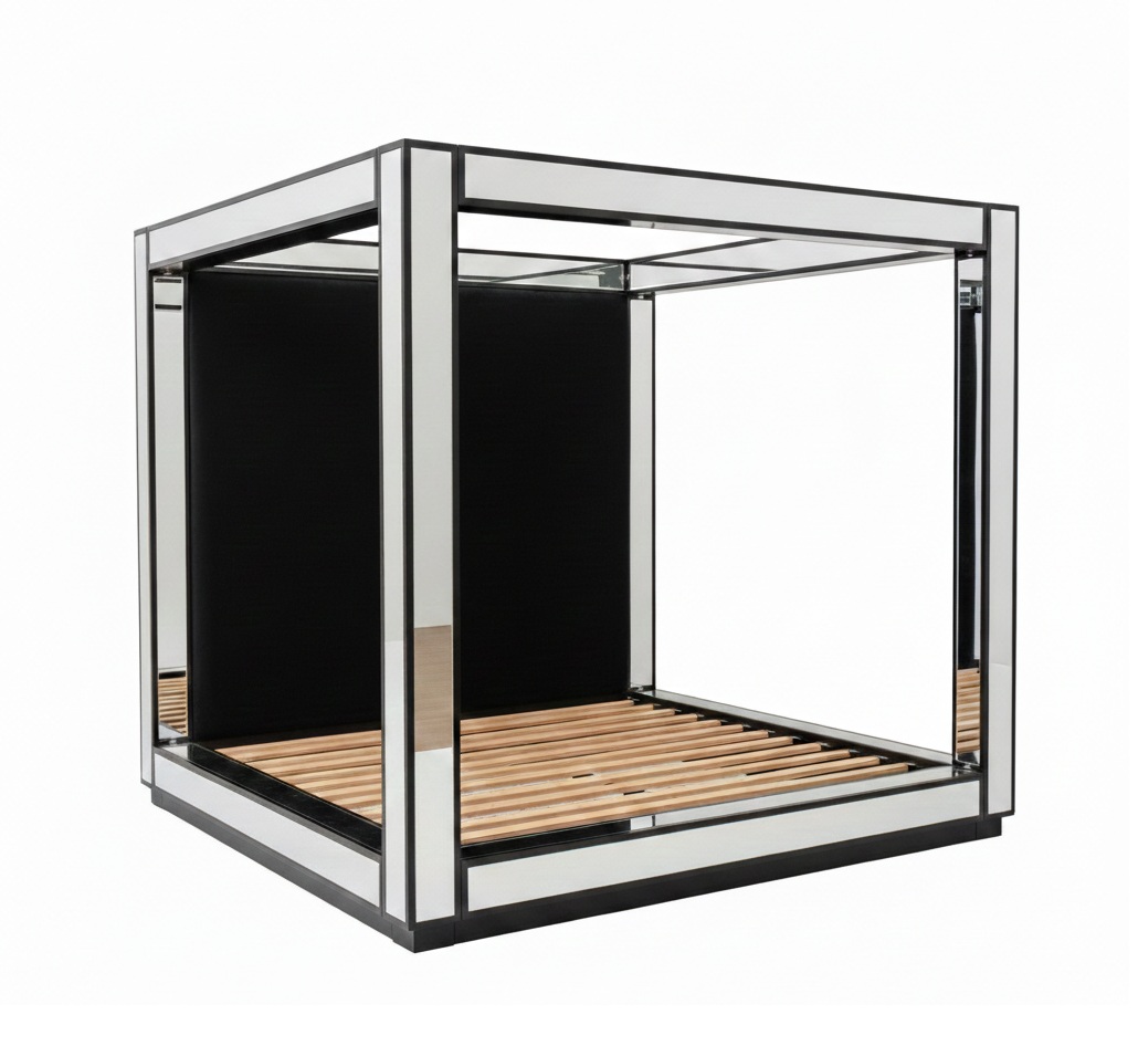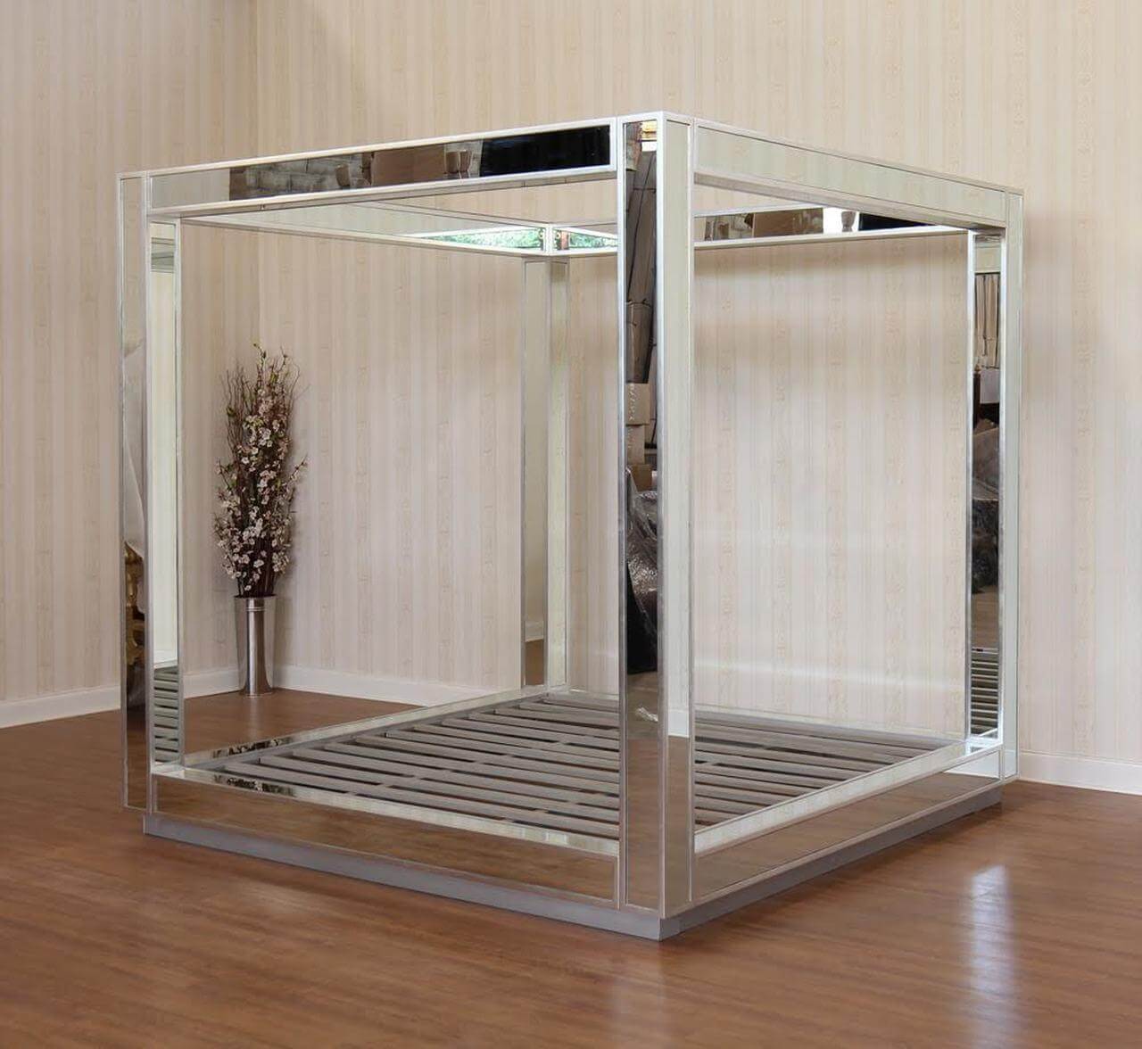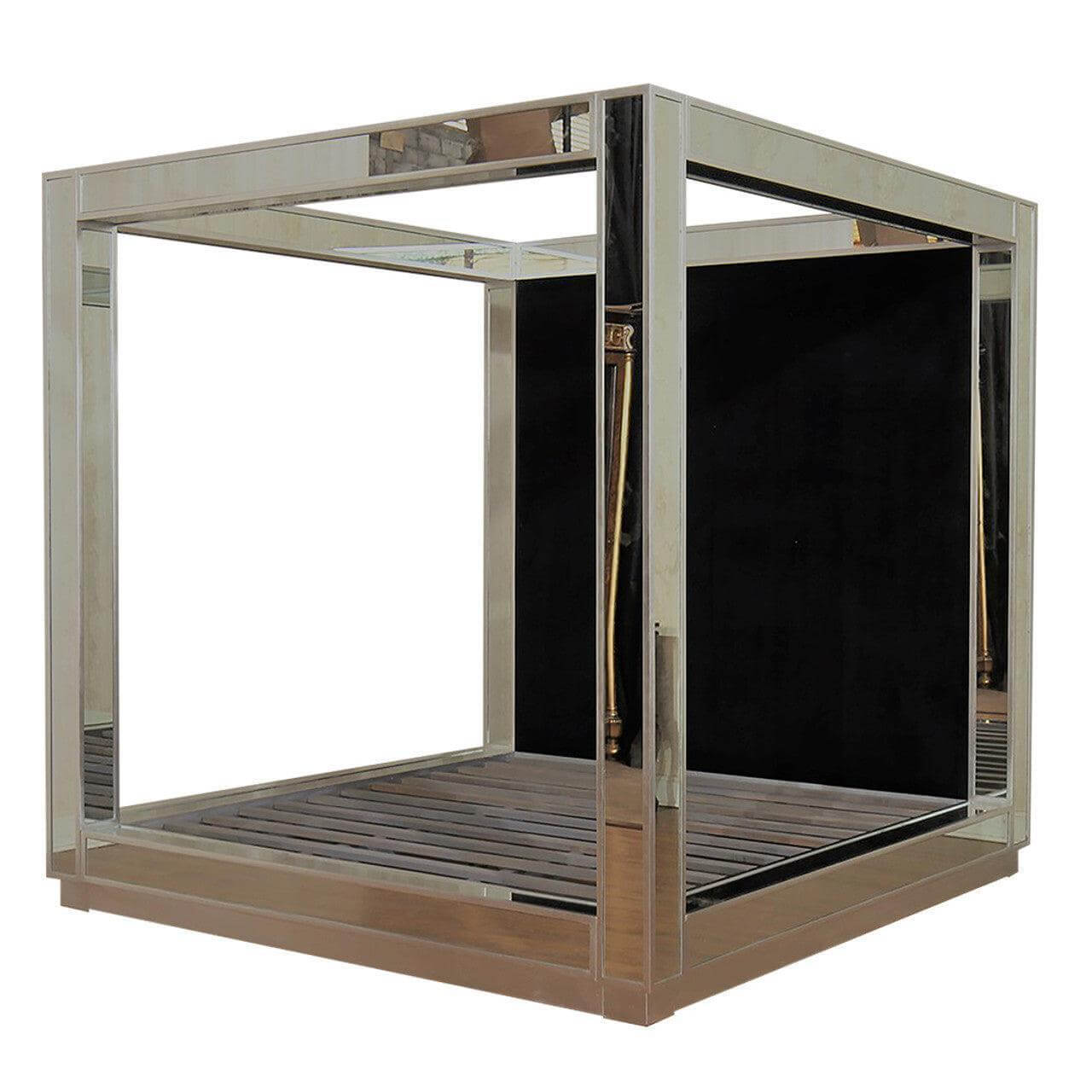 The Designer Collection Mirror Canopy Bed is a The Ultimate in designer luxury. Bespoke mirror Luxury design with Hollywood Regency Glamour. This stunning bedroom collection embodies Luxury Mirrored furniture style. The Designer Collection is handcrafted with Bespoke mirror and Handcrafted solid hardwood . This Canopy Mirror Bed is the perfect fashion statement that can be styled with our Mirrored furniture for glamourous Hamptons, Hollywood Regency style bedroom set. The Designer Collection Canopy Bed has been featured in Top fashion publications including Vogue Home, Home and Living, Architectural Digest. Available in Clear mirror or Antique finish mirror, bevelled mirror edge (gold, silver wood trim also available)