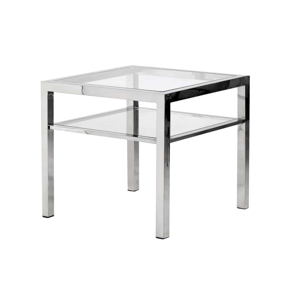 The Display Polished chrome Stainless Steel Square Side Table in a Polished Chrome Finish. This modern and stylish table is the perfect contemporary addition to an elegant lounge or bedroom with storage space for your favourite decor pieces.