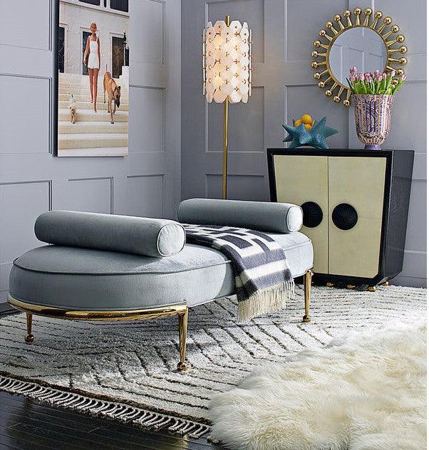 Dolce Light Teal Velvet Gold Bench