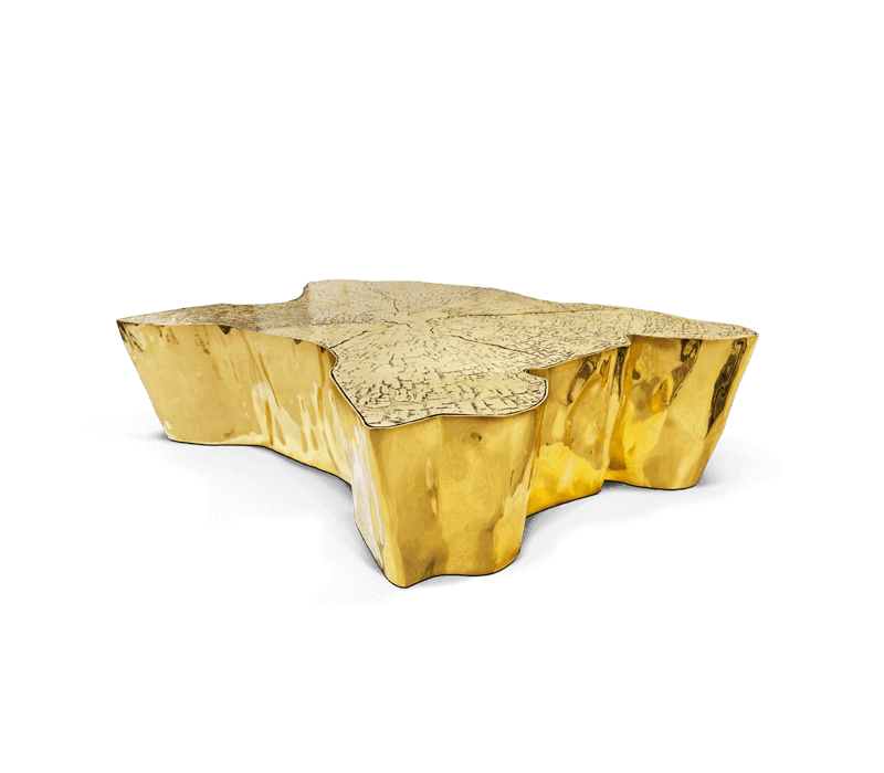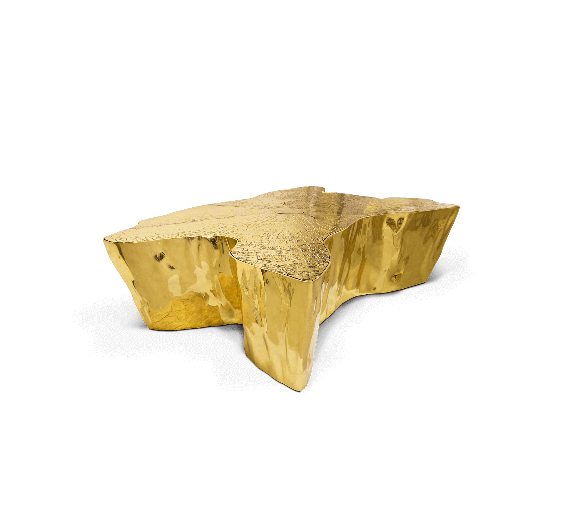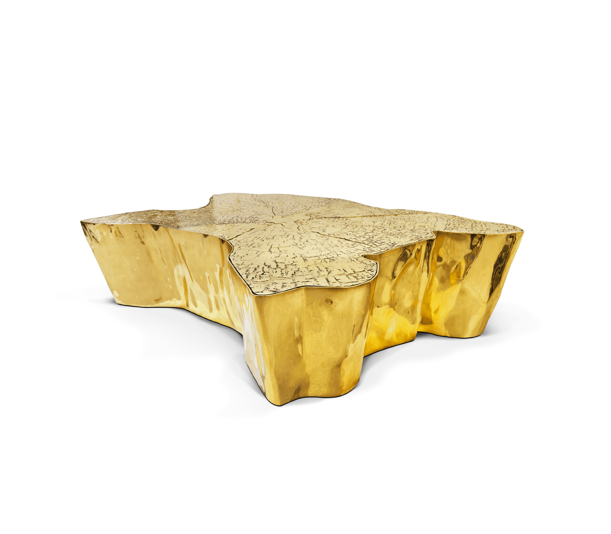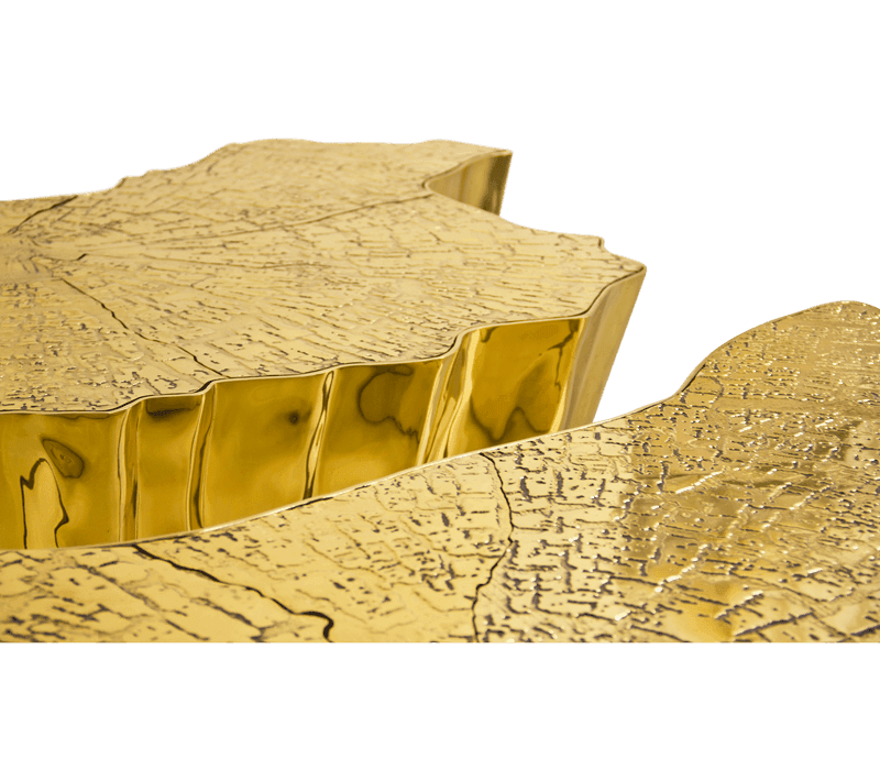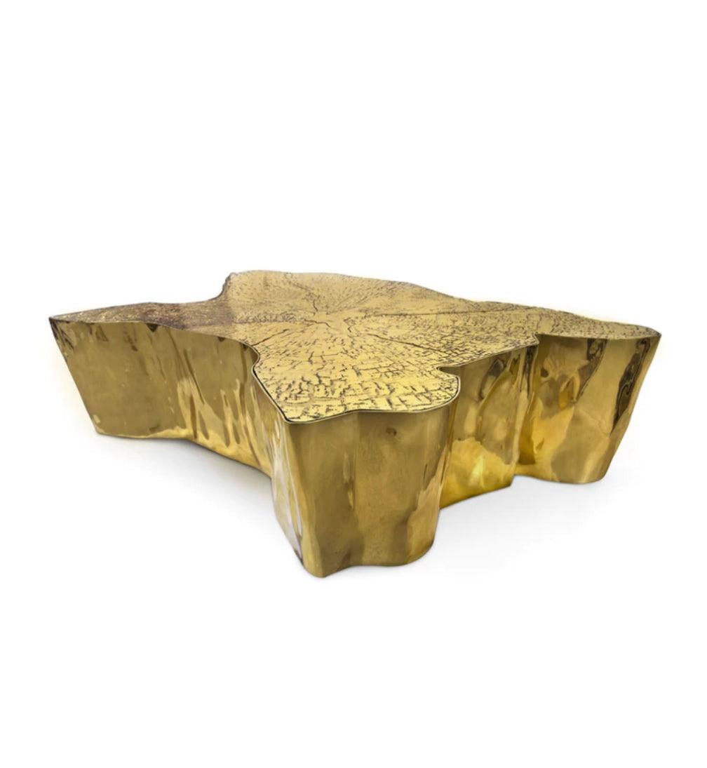 The mystic behind the name inspires Eden. A slice of the tree of life that fell from the Garden of Eden, this accent coffee table awakens desire and curiosity with its intriguing cut. Born from master artisans and the ancient technique of polished cast brass, this statement design piece incorporates nature-inspired design with industrious welding techniques, being manually assembled, making each piece unique. With delicate lines and bold details, a manually engraved top exposes the heart of a golden tree, boasting a sinuous brass gold plated base that stood the test of time.