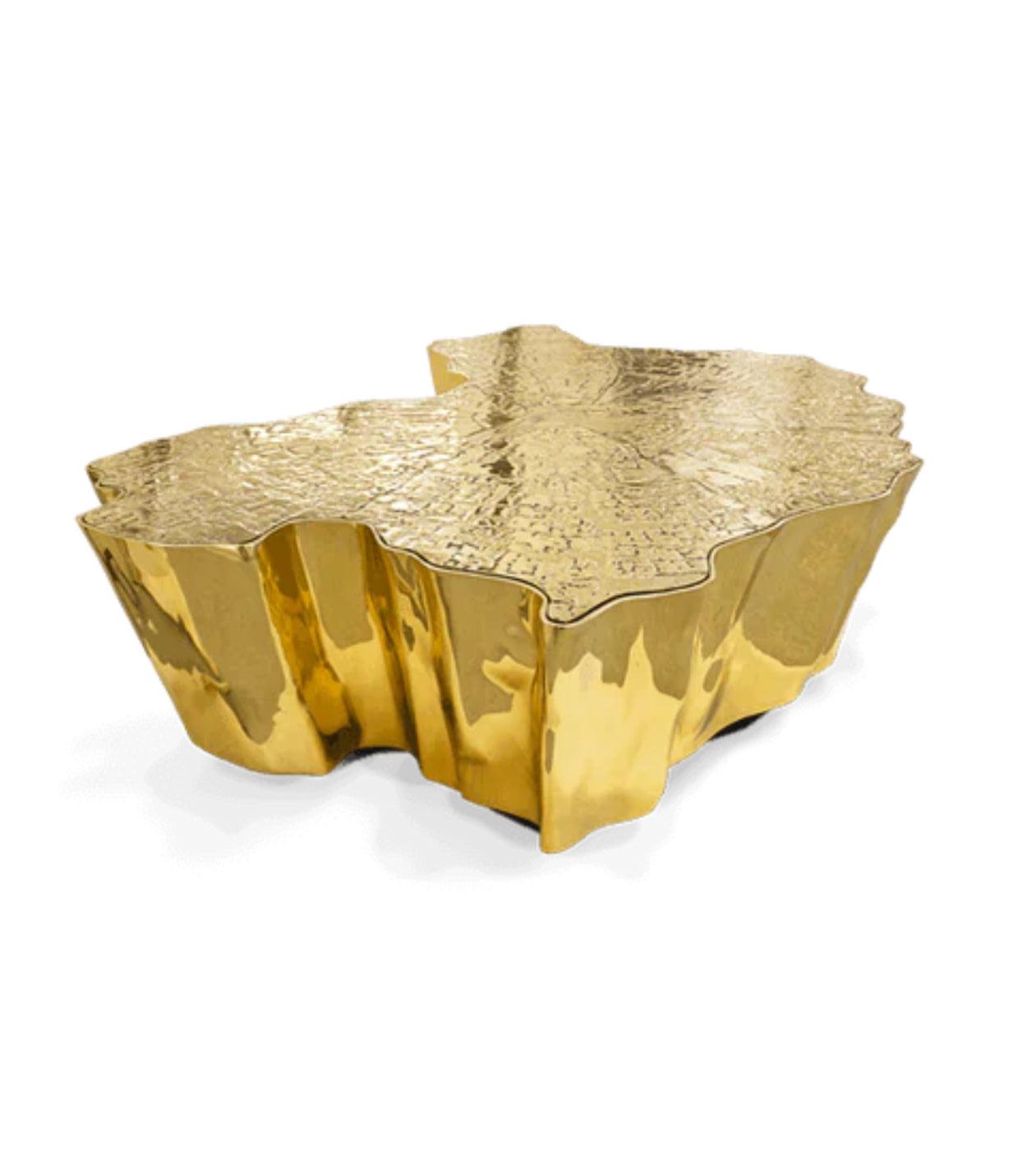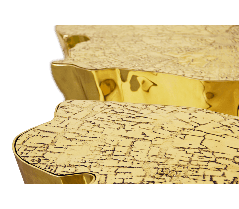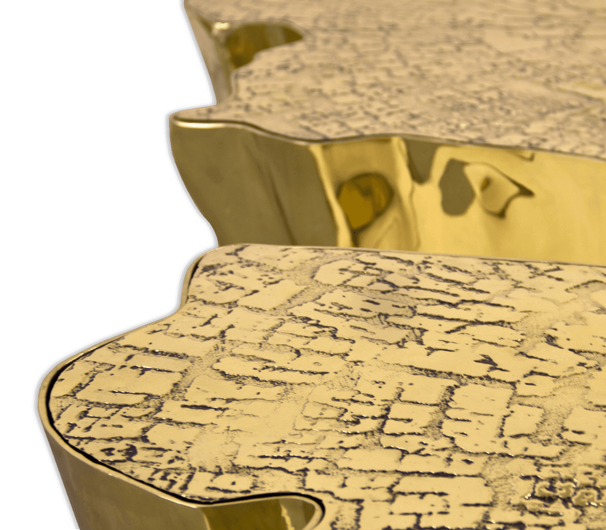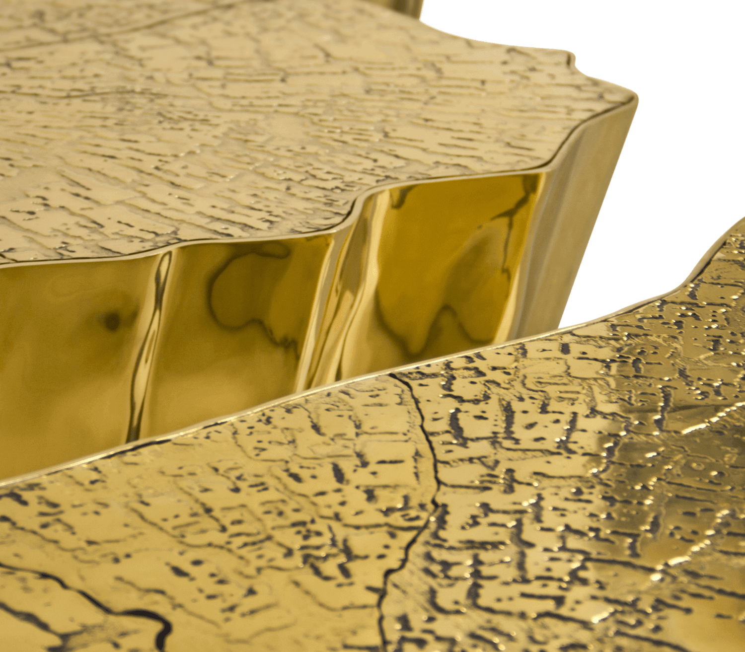 The mystic behind the name inspires Eden. A slice of the tree of life that fell from the Garden of Eden, this accent coffee table awakens desire and curiosity with its intriguing cut. Born from master artisans and the ancient technique of polished cast brass, this statement design piece incorporates nature-inspired design with industrious welding techniques, being manually assembled, making each piece unique. With delicate lines and bold details, a manually engraved top exposes the heart of a golden tree, boasting a sinuous brass gold plated base that stood the test of time.