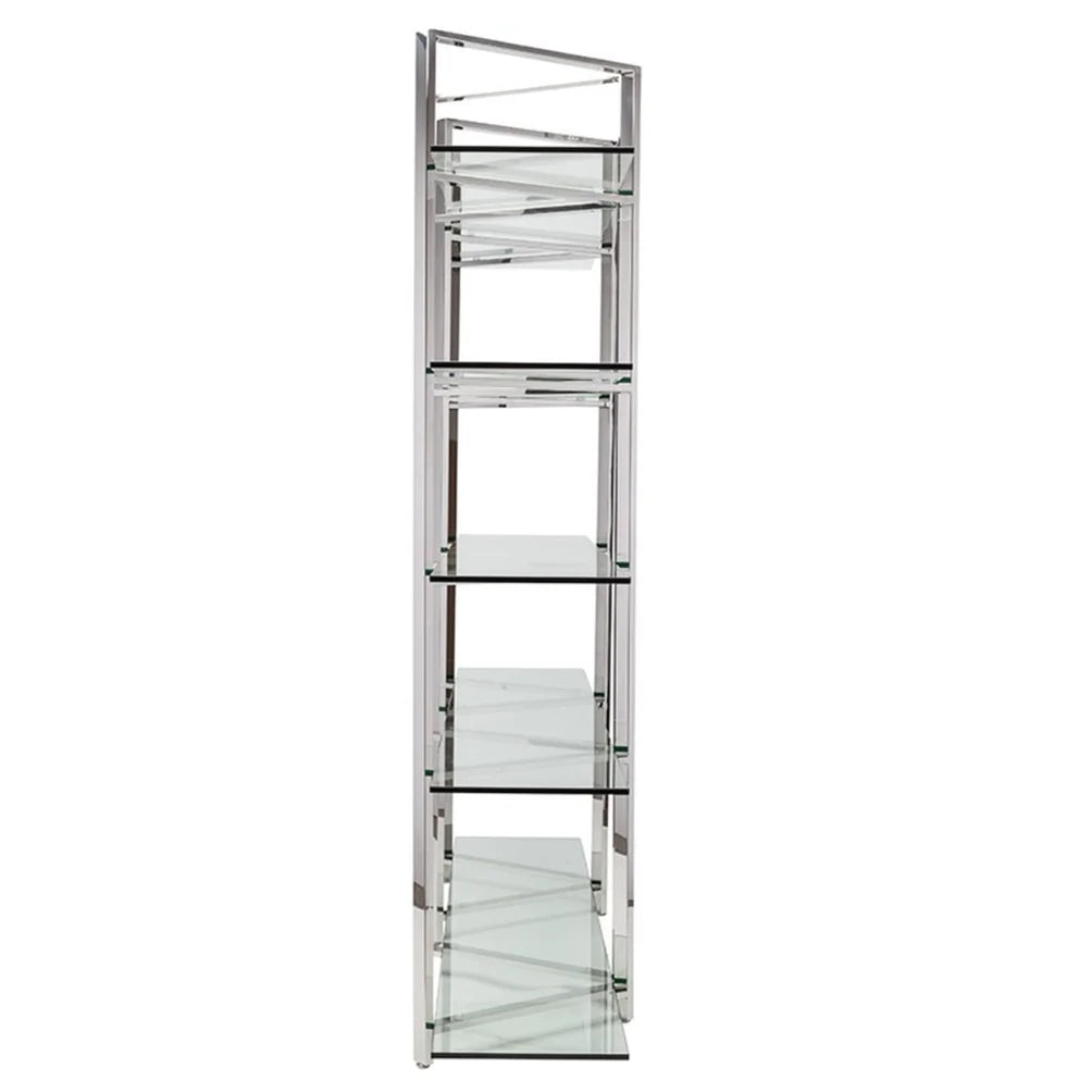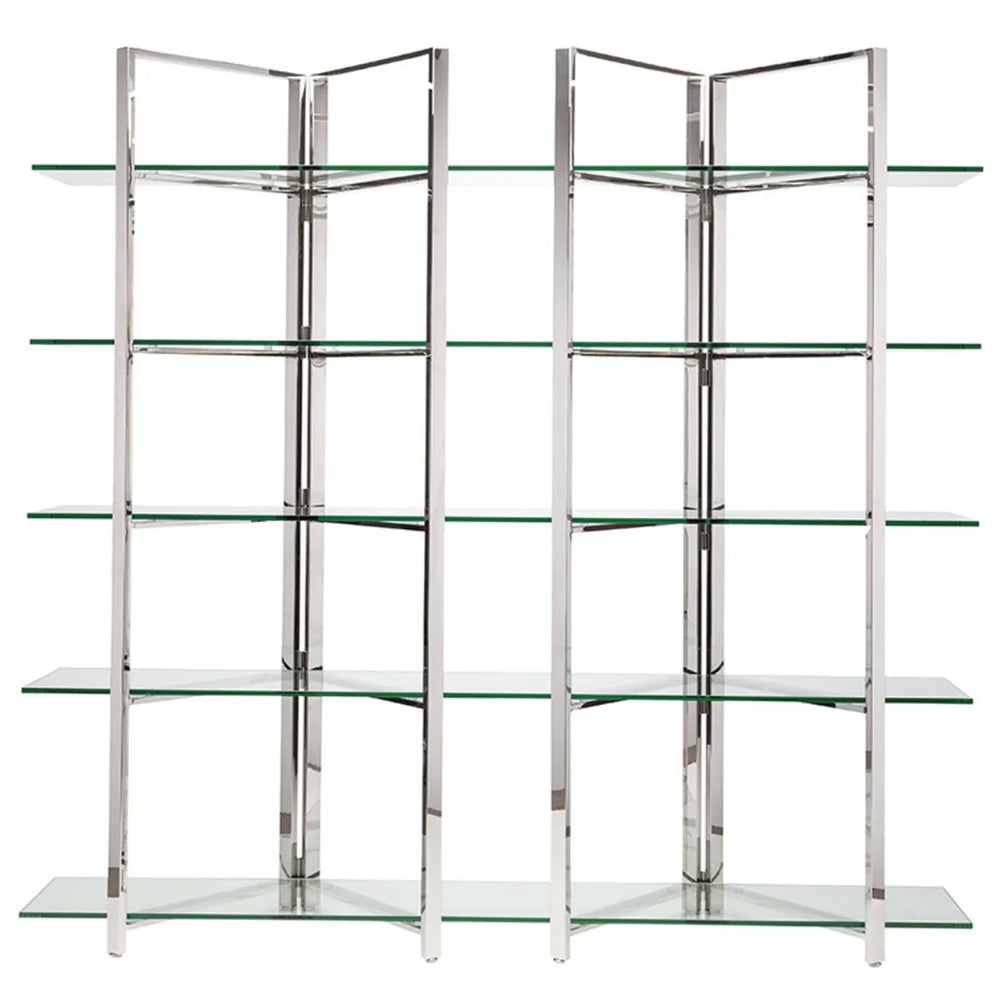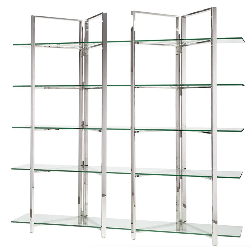 Elton Chrome Glass Etagere in polished chrome finish with clear glass.