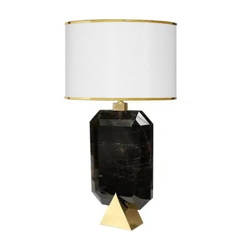 Emerald Black Crystal Chrome Lamp with White Chrome Linen Shade