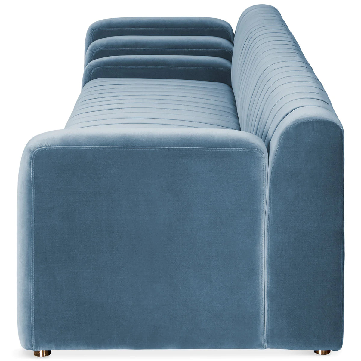 This Art Deco-inspired “Empire” sofa is a stunning tribute to the eponymous building and the city it calls home. Vertical channel tufting creates strong, bold lines; the stepped arms make this sofa a head-turner. Available in customisable velvet, so you can find the perfect colour for your space.