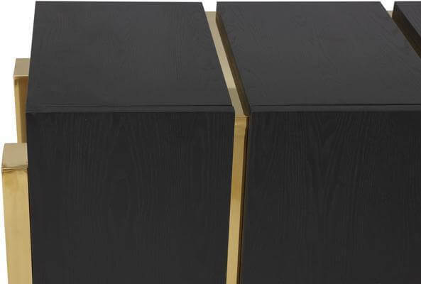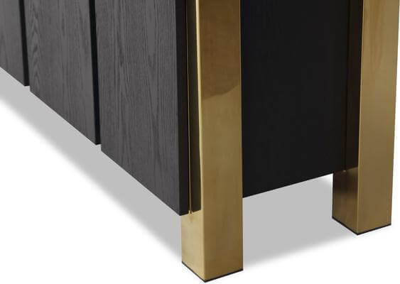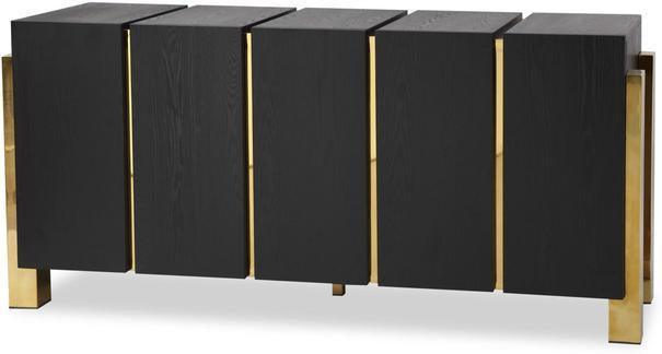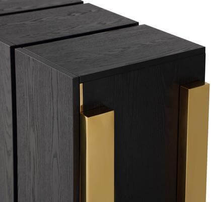 The Enigma Black Ash Sideboard with Brass Detail delivers both style and function in one go. The sideboard features a clean, crisp line, ideal for luxurious interiors. It’s made from black ash veneer with beautiful brass metal details on the main body and frames. The sideboard is handcrafted and carefully assembled to ensure it is the highest quality. Use the Enigma Black Ash Sideboard with Brass Detail in your living room, dining space or even in your study or office. It’s convenient and provides plenty of amazing storage.