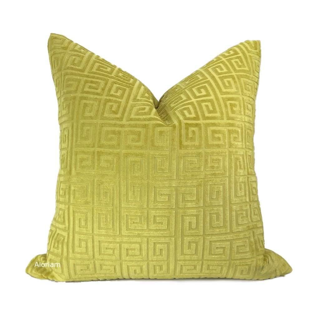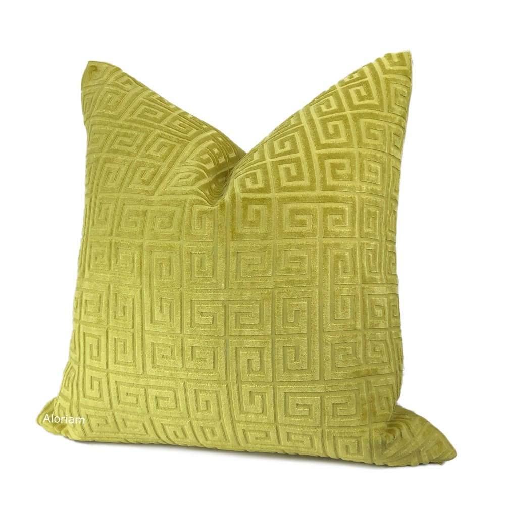 Eros Chartreuse Velvet Embossed Cushion 50cm