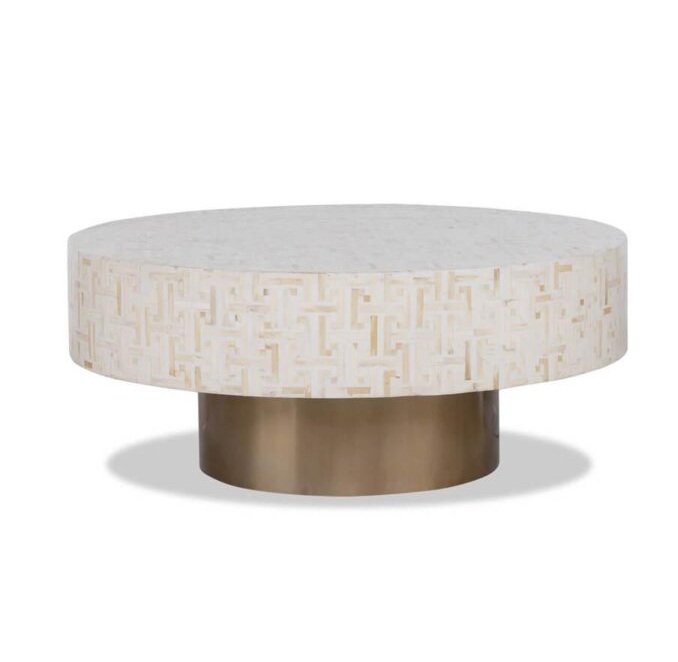 Eros Cream White Bone Inlay Copper Coffee Table
