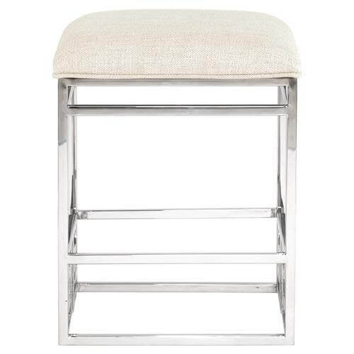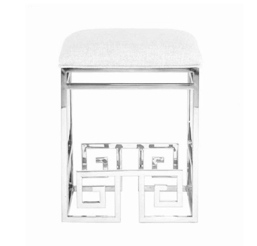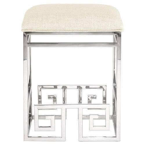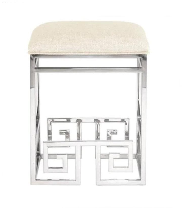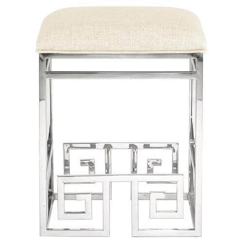 Eros Off White Linen Chrome Greek Key Barstool