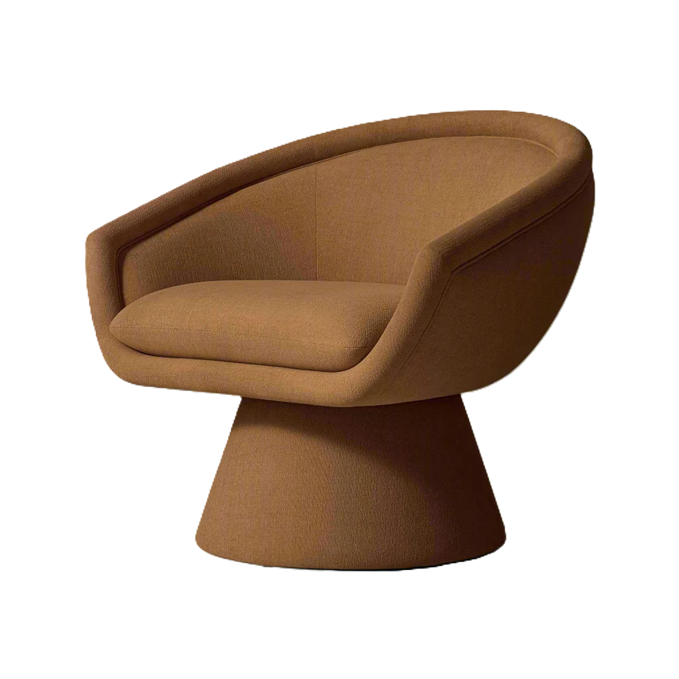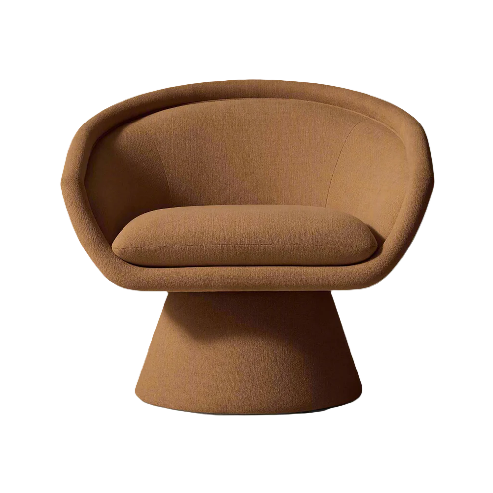 Midcentury architecture inspired the aerodynamic silhouette of Bench-made and upholstered by hand, this chair is both elegant and purposeful. Perched on a conical swivel base, the gently arching back flows seamlessly down swept arms, inviting relaxation.