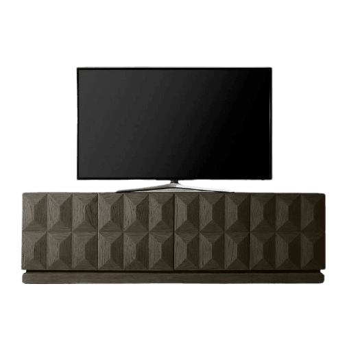Richly dimensional faceted diamonds are pieced by hand with precisely mitered edges, their geometric symmetry grounded by the rusticity of Solid oak.